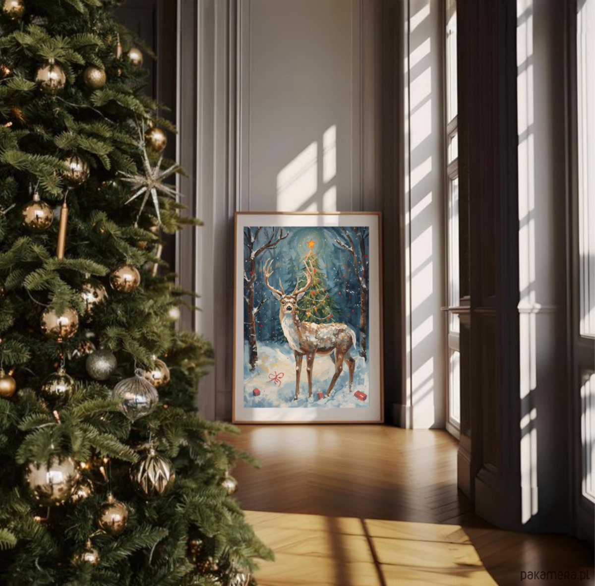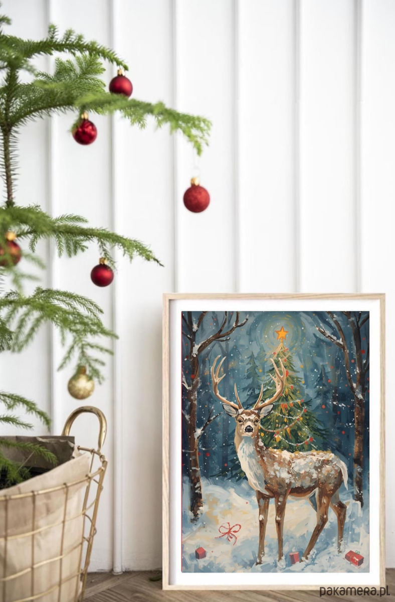 PLAKAT świąteczny jeleń grafika Boże Narodzenie renifer