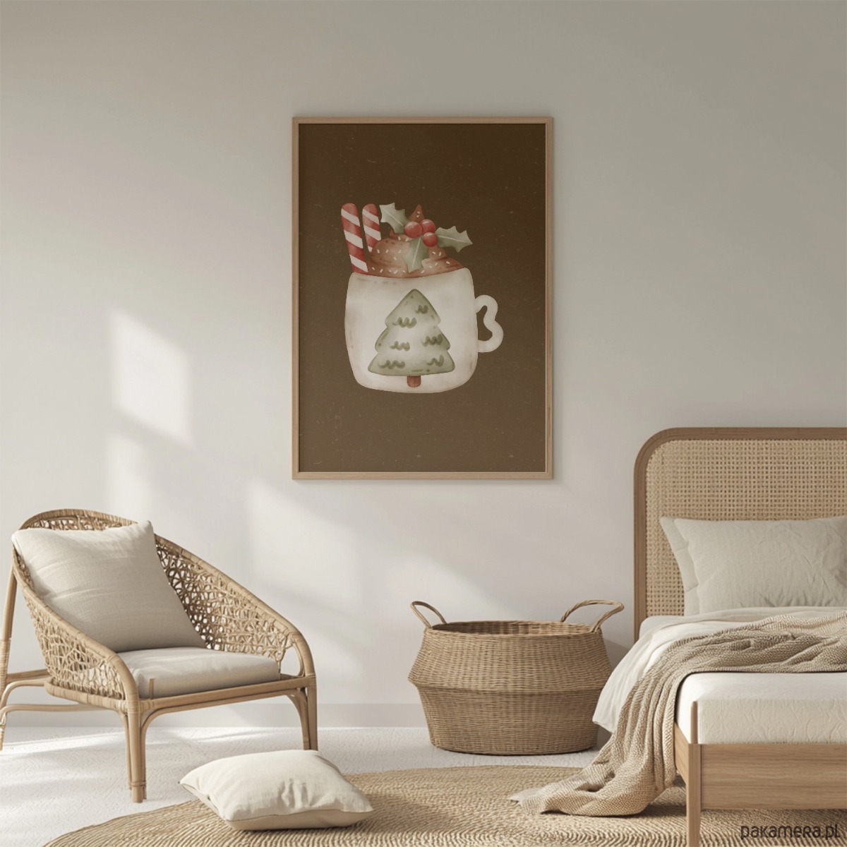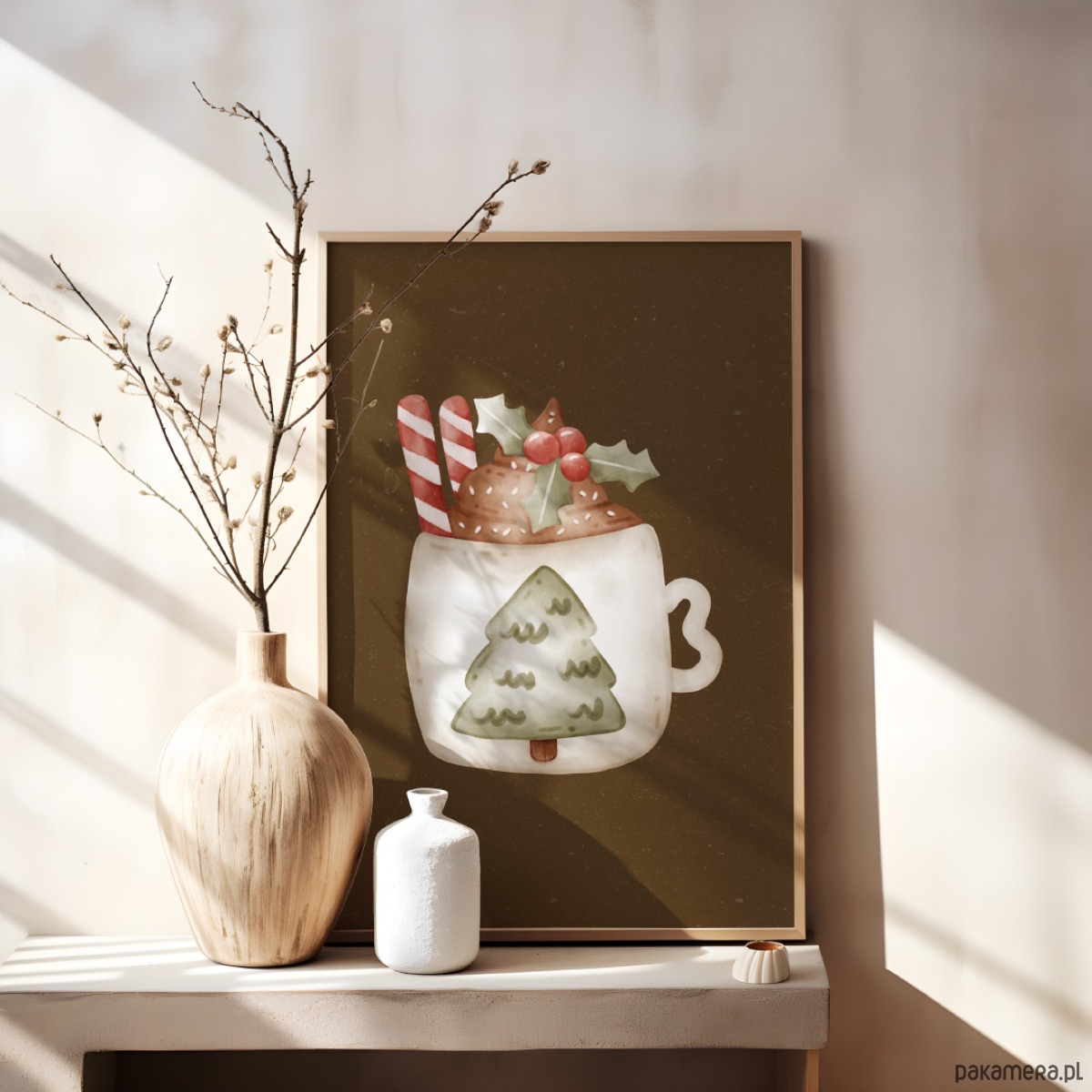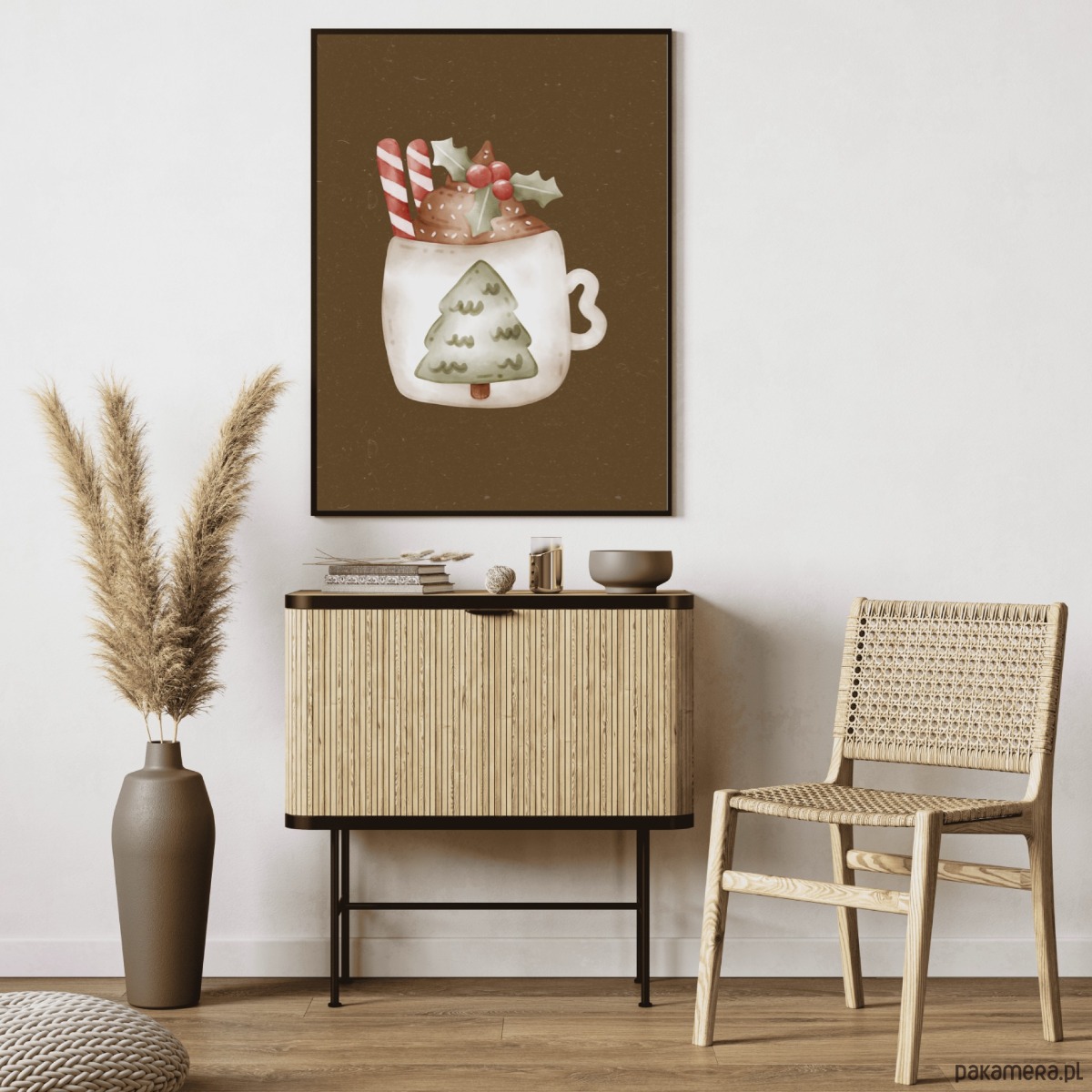 Plakat Swiąteczny Kubek na ścianę A3 Minimalistyczny Plakat nowoczesny