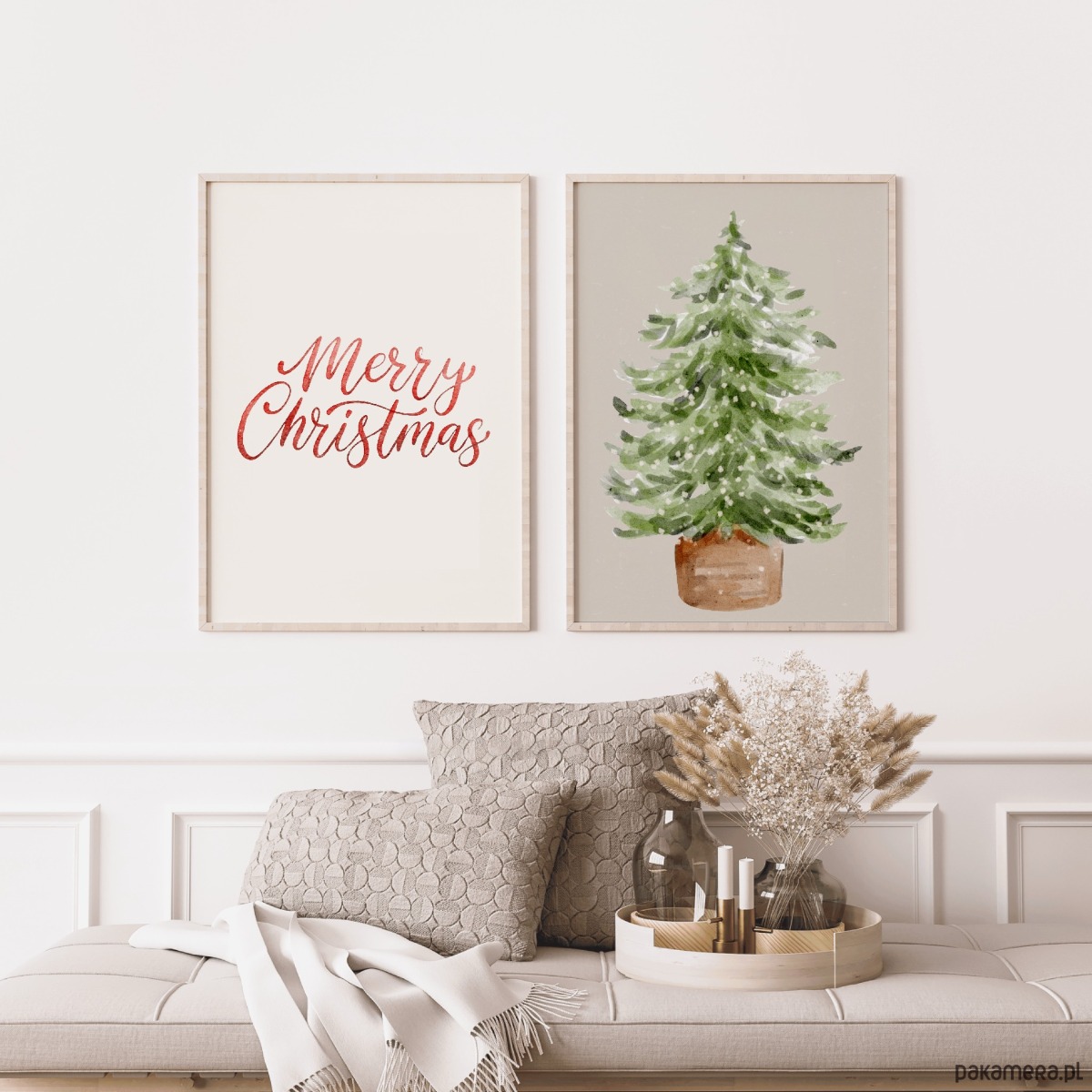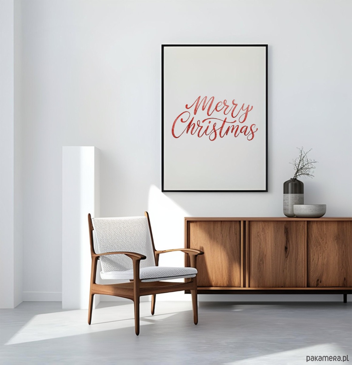 Plakat Swiąteczny na ścianę A3 Minimalistyczny Merry christmas Napis