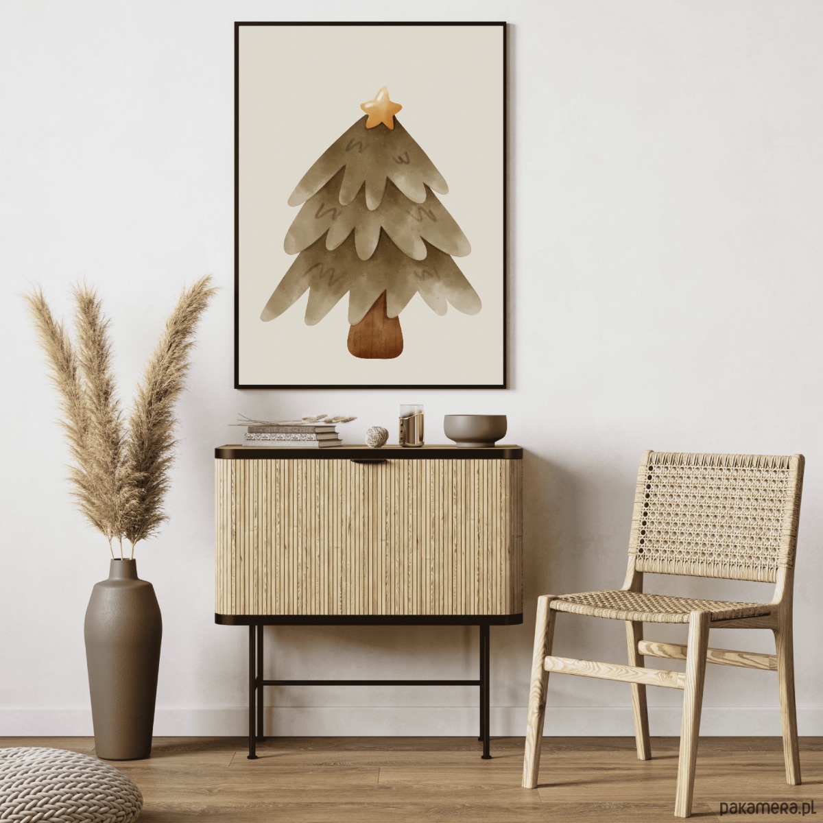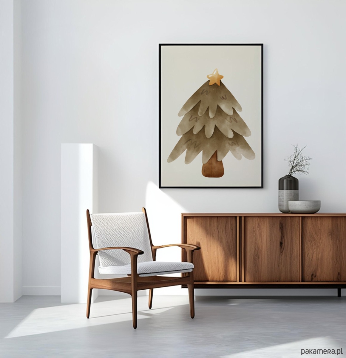 Plakat Swiąteczny na ścianę A3 Minimalistyczny Plakat nowoczesny Choinka