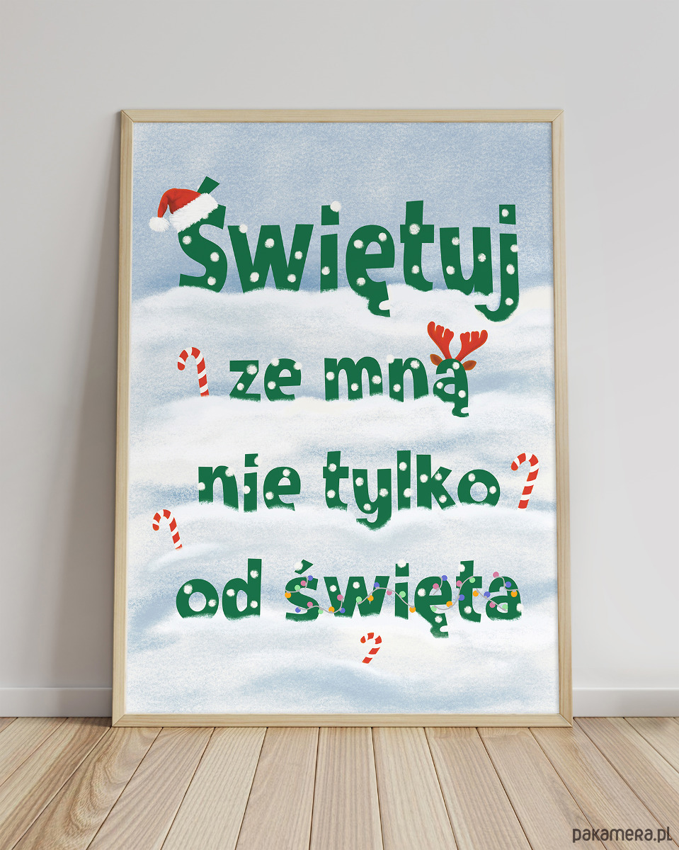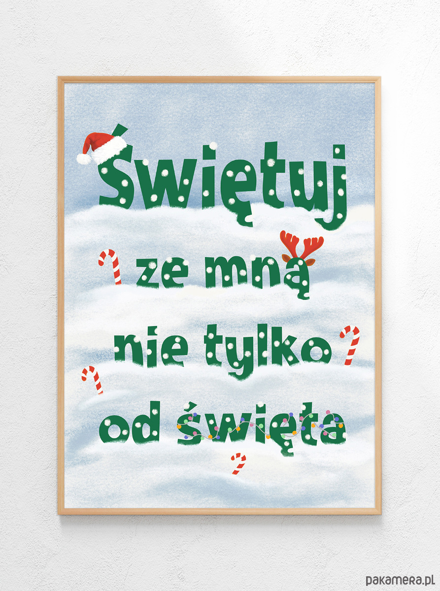 Plakat „Świętuj że mnie nie tylko od święta” to małe przypomnienie o tym, że nie trzeba czekać na specjalną okazję by celebrować momenty z wyjątkową osobą.