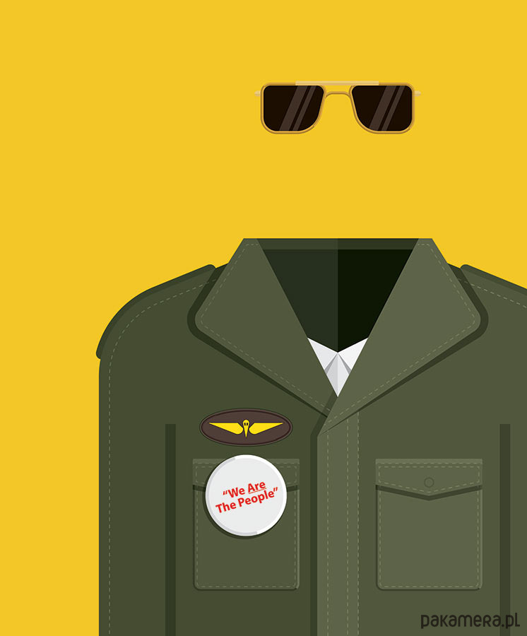 Plakat z autorską grafiką inspirowaną filmem "Taksówkarz" (Taxi Driver). Pochodzi z serii "Cinema Costumes" (Kostiumy kinowe) i przedstawia strój Tavisa Bickle.