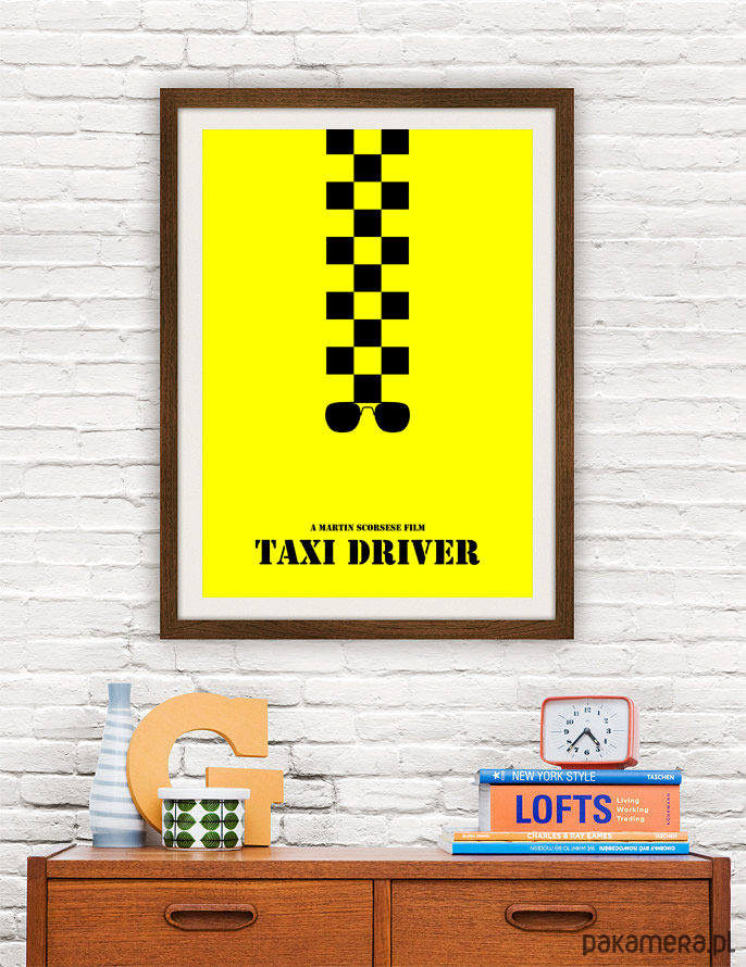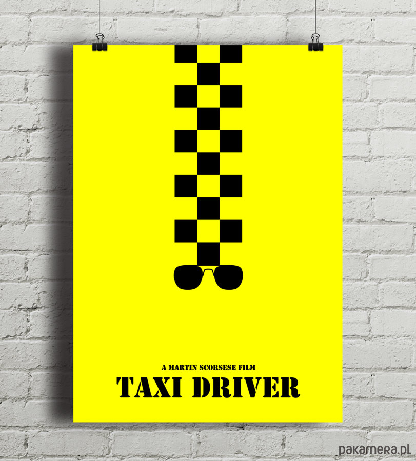 Plakat z autorską grafiką inspirowaną filmem Taksówkarz (Taxi Driver), reż. M.Scorsese. Pozycja obowiązkowa dla miłośników kina.