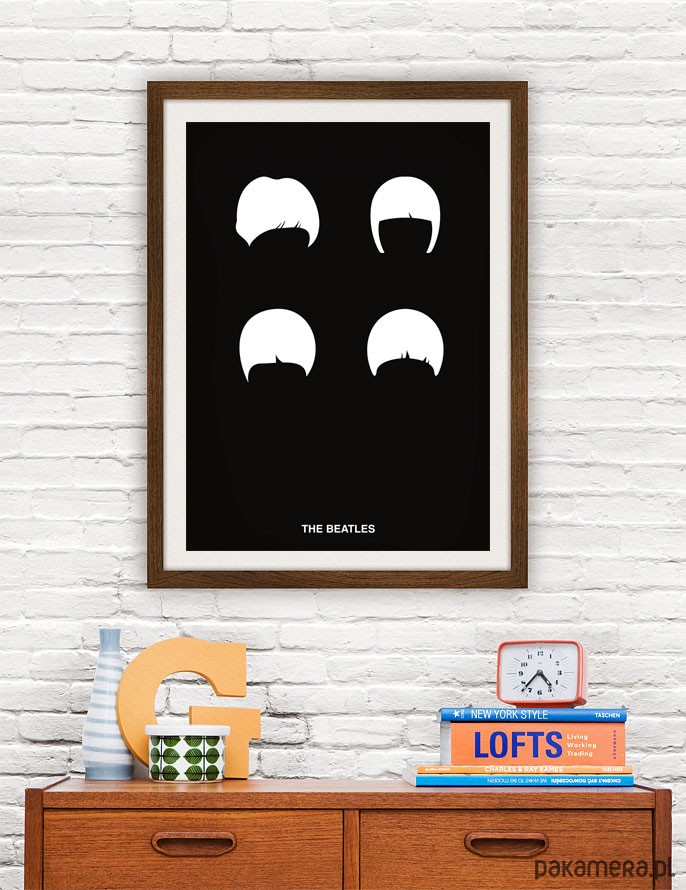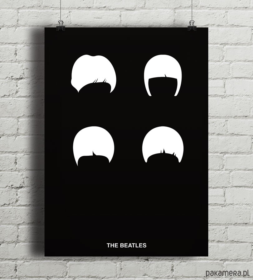Plakat inspirowany zespołem The Beatles, w szczególności płytą "With the Beatles" z 1963 roku i charakterystycznym dla członków zespołu obcięciem o zaokrąglonych konturach i z długą grzywką.