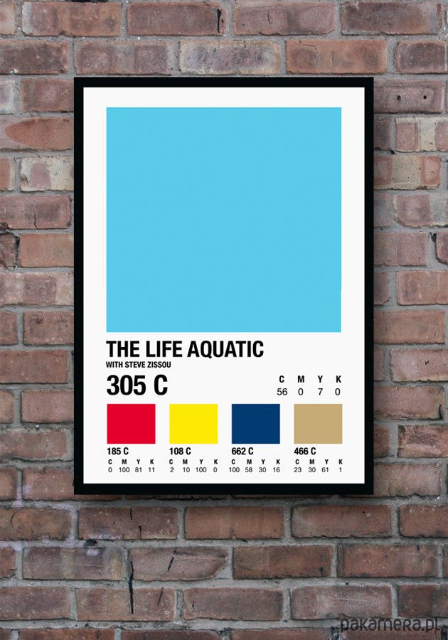 Plakat z autorską grafiką inspirowaną filmem "Podwodne życie ze Stevem Zissou" (The Life Aquatic) w reżyserii Wesa Andersona.