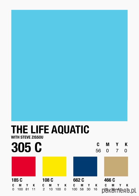 Plakat z autorską grafiką inspirowaną filmem "Podwodne życie ze Stevem Zissou" (The Life Aquatic) w reżyserii Wesa Andersona.