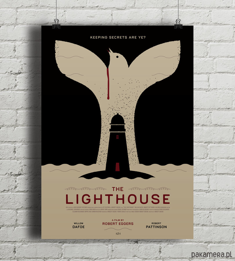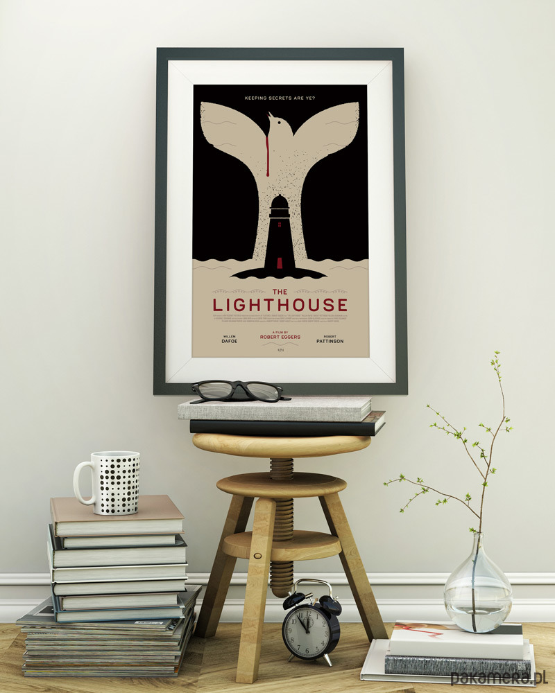 Plakat z autorską grafiką inspirowaną filmem The Lighthouse, reż. Robert Eggers.