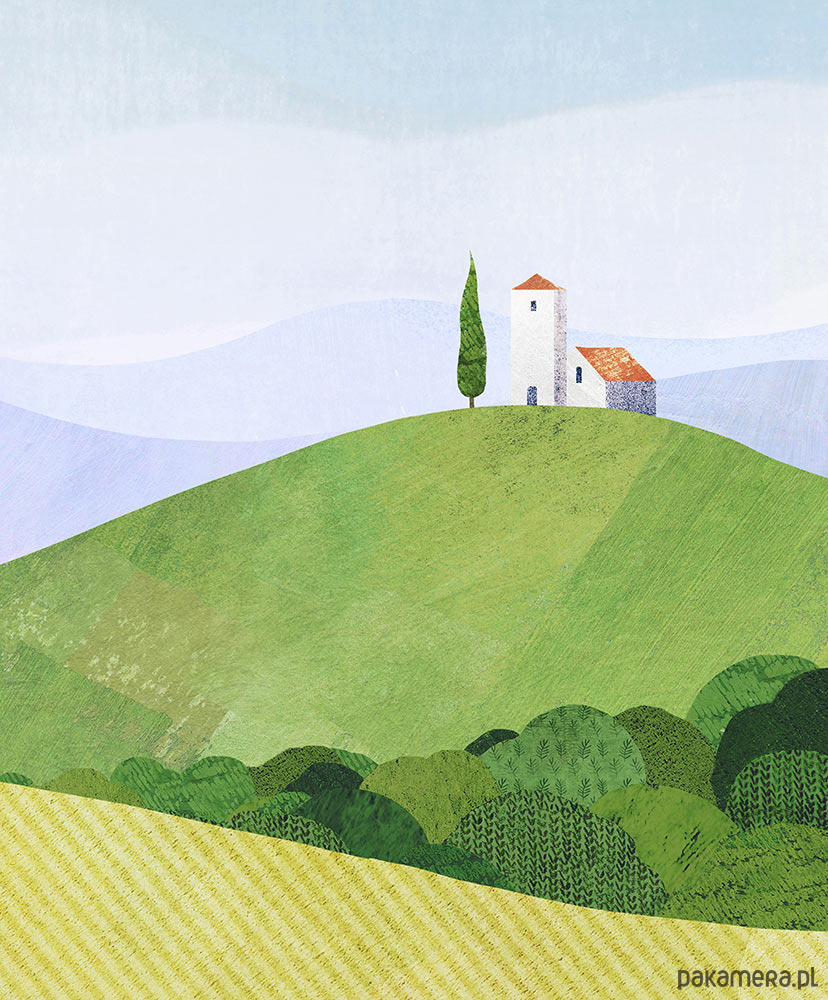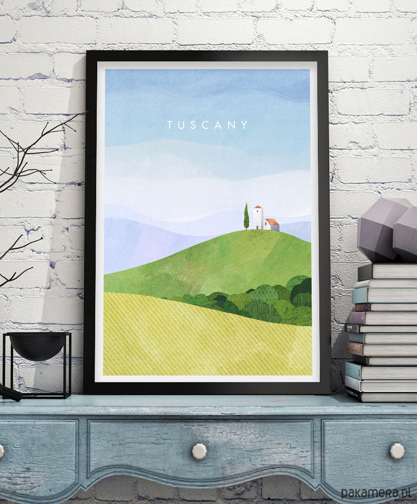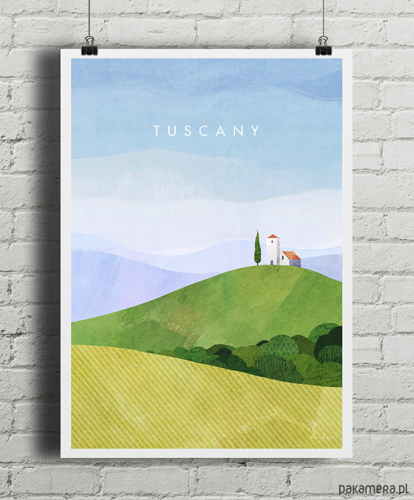 Podróżniczy plakat Toskania z zielonymi, charakterystycznymi dla tego regionu wzgórzami, wypełnia wakacyjna, radosna energia. Autorem plakatu jest brytyjski ilustrator Henry Rivers. Sprawdź inne plakaty z tej serii i stwórz swoją wyjątkową galerię.