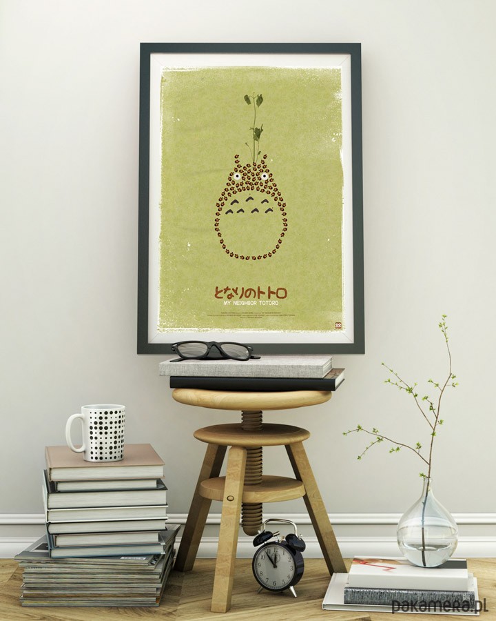 Plakat z autorską grafiką inspirowaną filmem My Neighbor Totoro w reżyserii Hayao Miyazakiego.