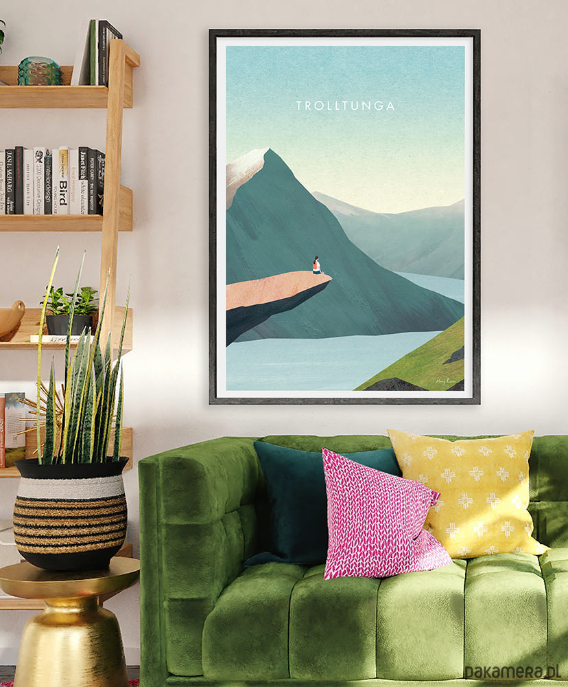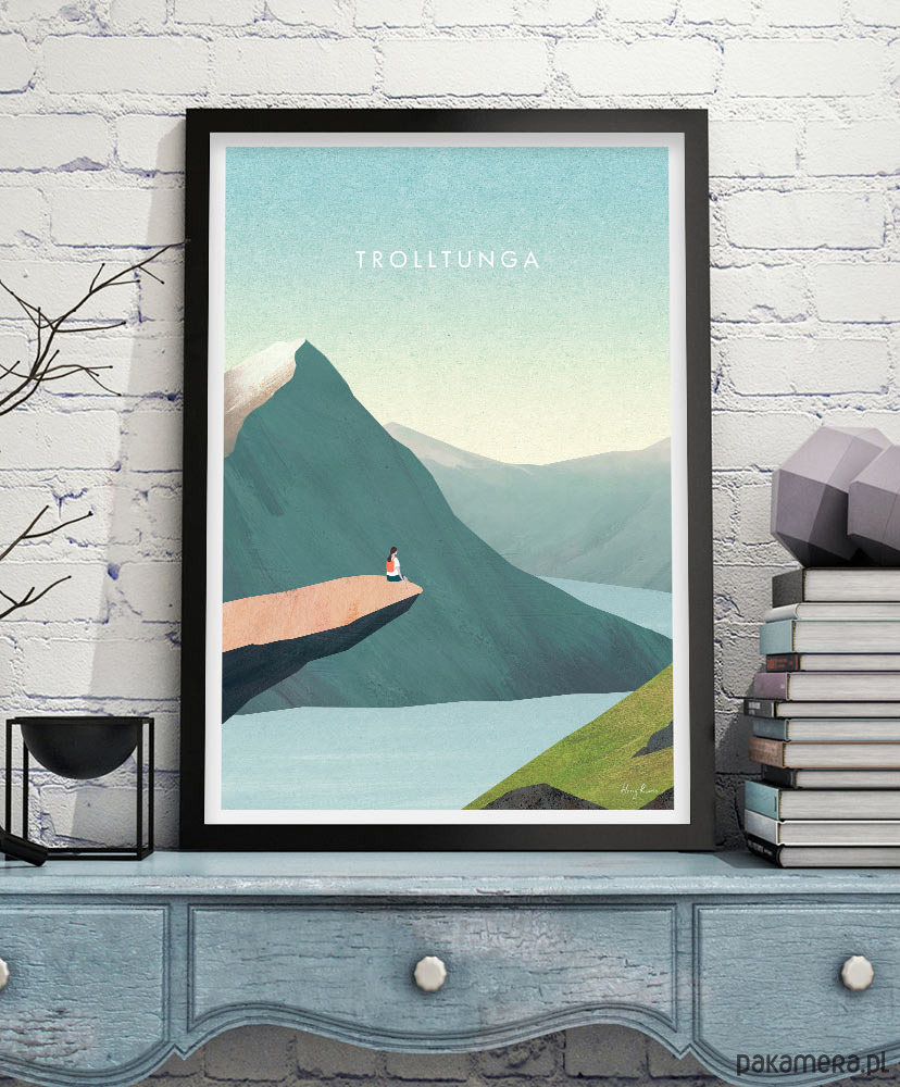 Plakat Trolltunga - Język Trolla - przedstawia norweskie skały, których niesamowite kształty pobudzają baśniową stronę wyobraźni. Północny krajobraz jak zawsze trochę srogi, trochę ascetyczny, ale z widokami, które zapierają dech.