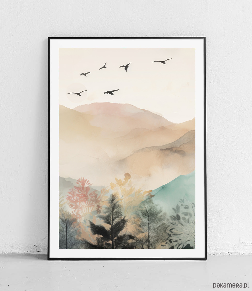 Plakat Tryptyk Mglista kraina w akwarelach