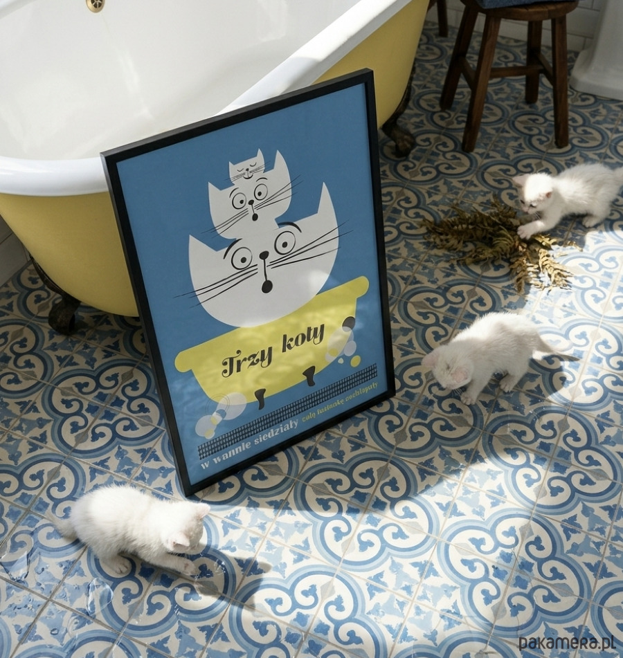 Plakat Trzy koty w wannie siedziały całą łazienkę zachlapały 30x40
