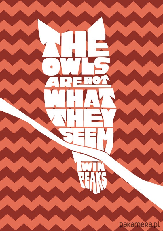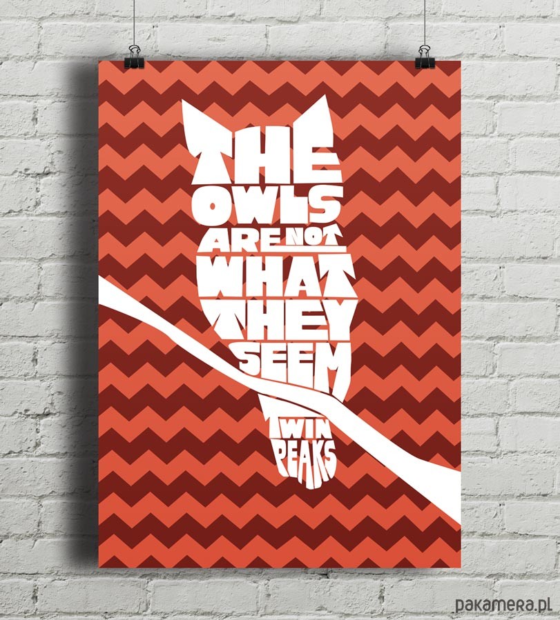 Typograficzny plakat z autorską grafiką inspirowaną serialem "Miasteczko Twin Peaks". Widnieje na nim słynny cytat "The owls are not what they seem" (Sowy nie są tym, czym się wydają).
