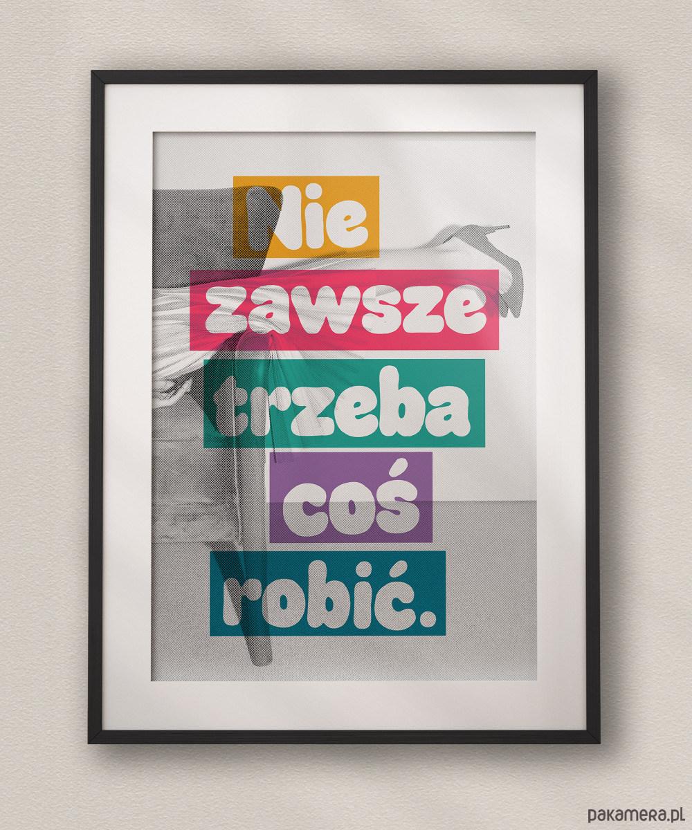 Plakat typograficzny dla pracoholika NIE ZAWSZE TRZEBA COŚ ROBIĆ