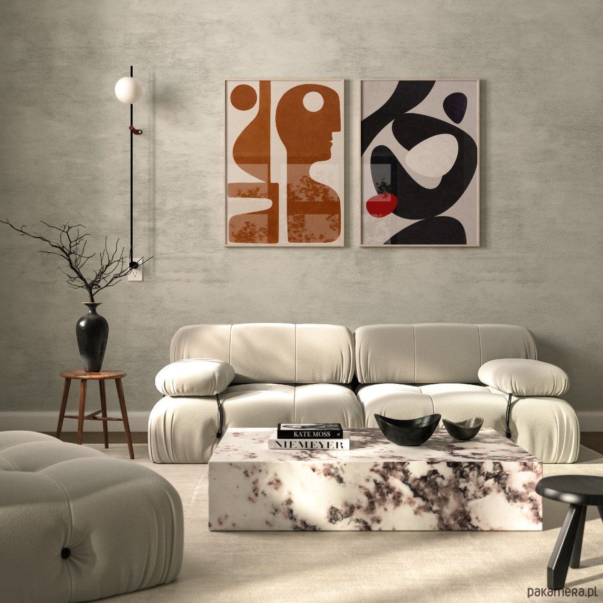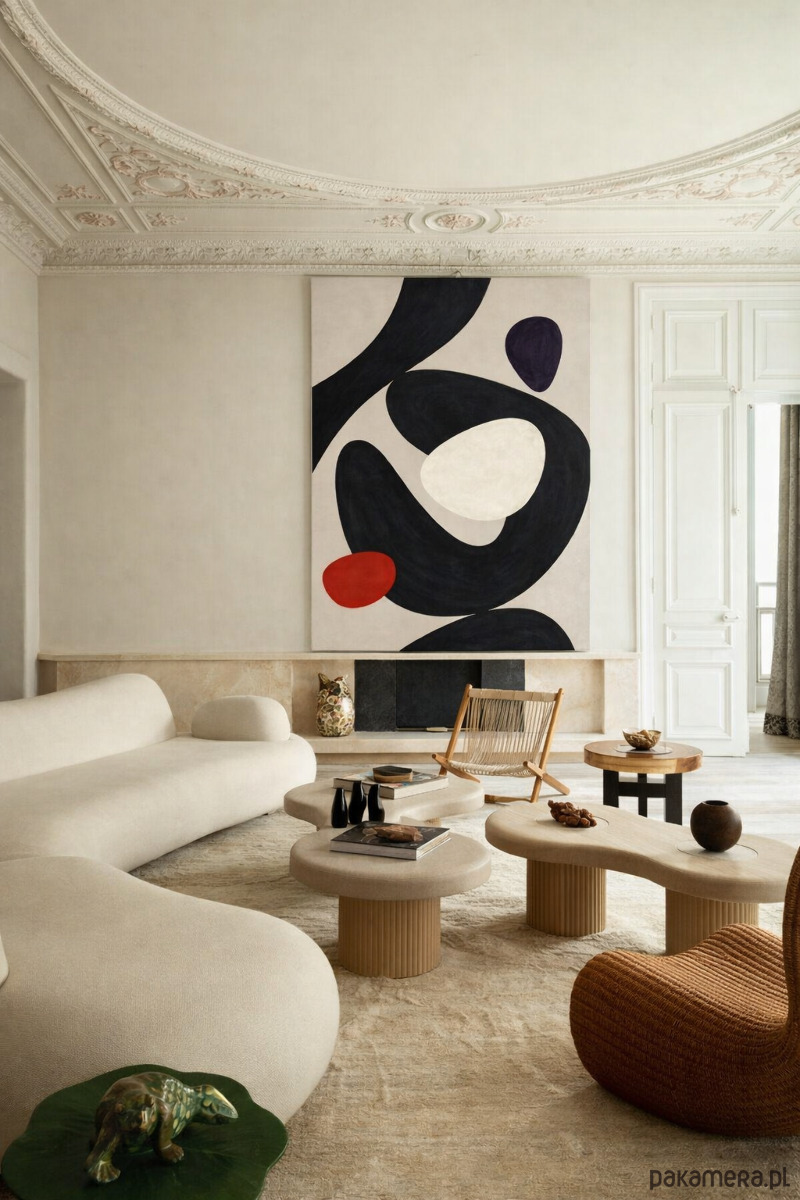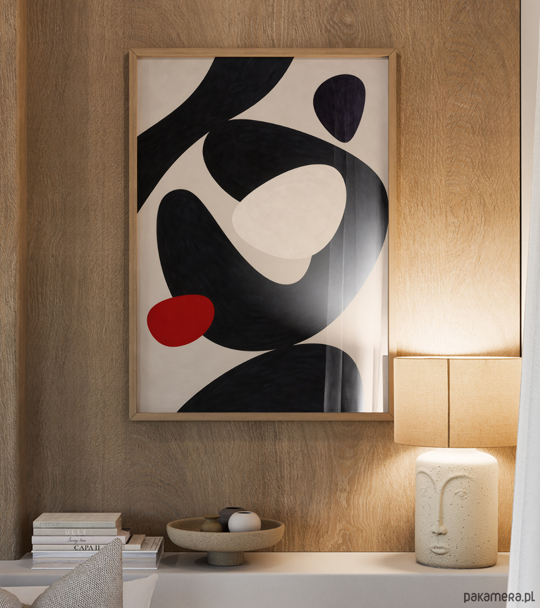 Biel i czerń wprowadzają minimalizm, natomiast czerwony akcent dodaje energii i ekspresji, przełamując surowość kompozycji. To plakat, który świetnie odnajduje się we wnętrzach w stylu modernistycznym, minimalistycznym lub boho, wprowadzając do przestrzeni subtelną, ale wyrazistą atmosferę.
