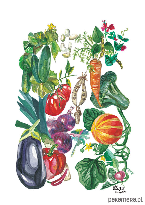 Warzywka dostępne w 3 formatach. Wydrukowane na papierze o gramaturze 180 g/m2.