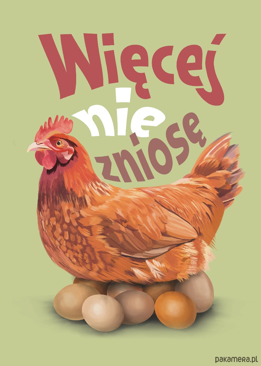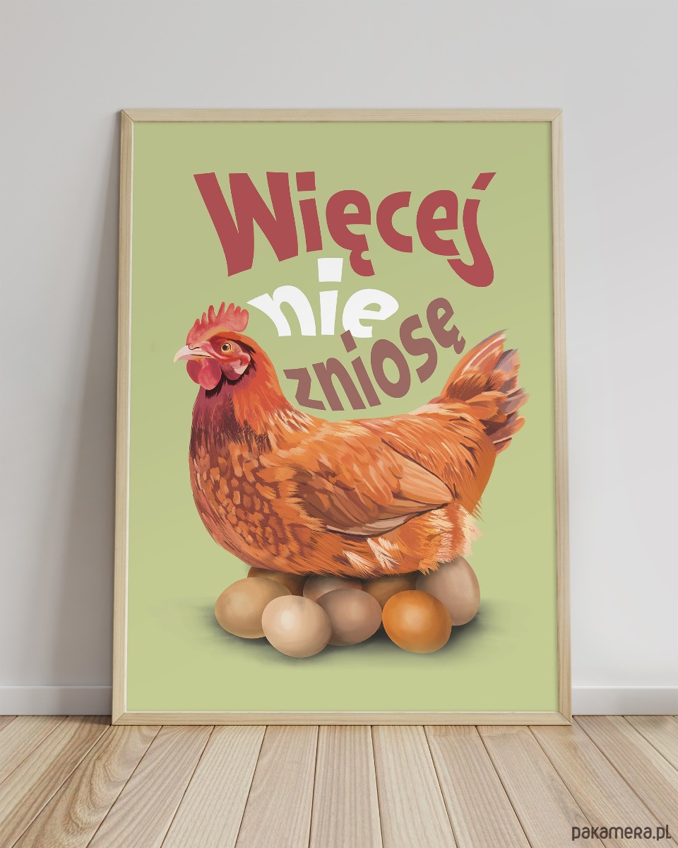 Zabawny plakat z kurą, która ma już serdecznie dość! „Więcej nie zniosę” to idealny komentarz do życia w biegu, pracy po godzinach… i może też mała refleksja nad tym, ile znosimy my – i ile znoszą kury. Świetny do kuchni, biura albo jako prezent z jajem. Dosłownie.