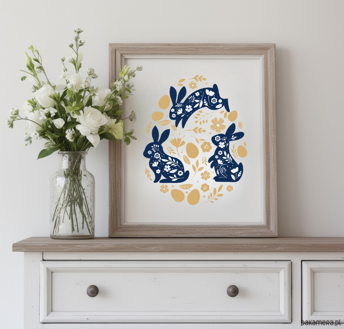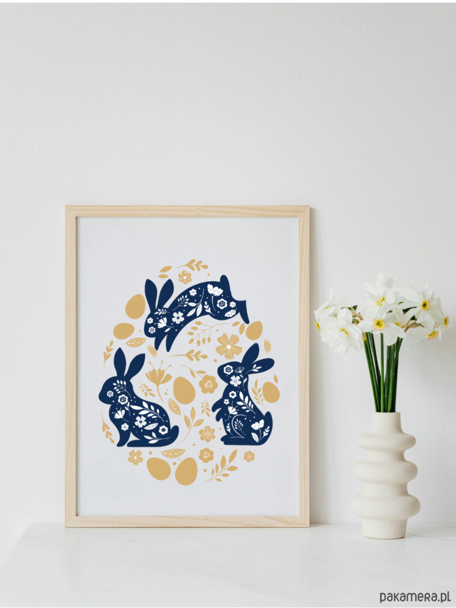 PLAKAT wielkanocny zając z króliczkiem ozdoba wielkanocna