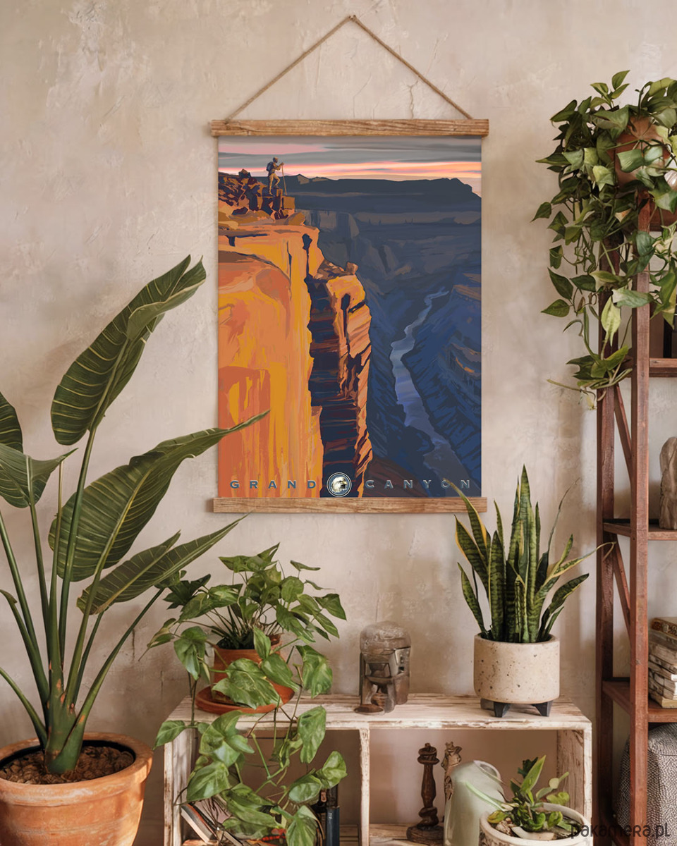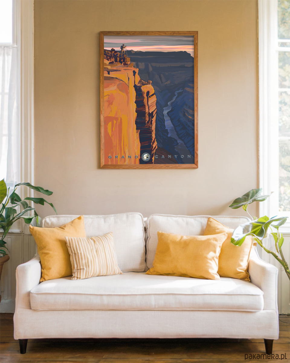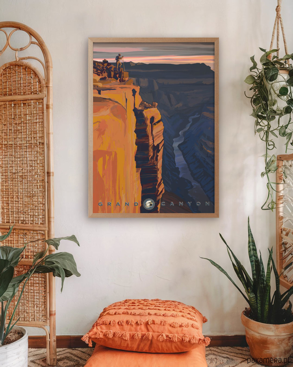 Plakat przedstawia jedną z najbardziej zachwycających skalnych formacji. Pomarańczowo-czerwone warstwy kolorystyczne skał, monumentalne rozmiary i spokojna rzeka poniżej - wszystko to sprawia, że Wielki Kanion rozbudza wyobraźnię każdego podróżnika. Dzięki intensywnym barwom plakat przykuwa wzrok i stanowić będzie wyrazisty akcent w każdym pomieszczeniu.