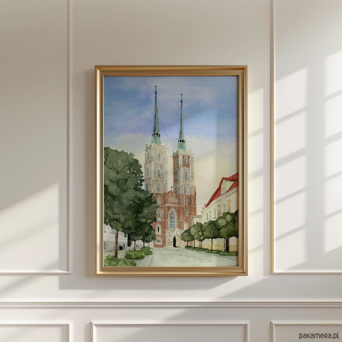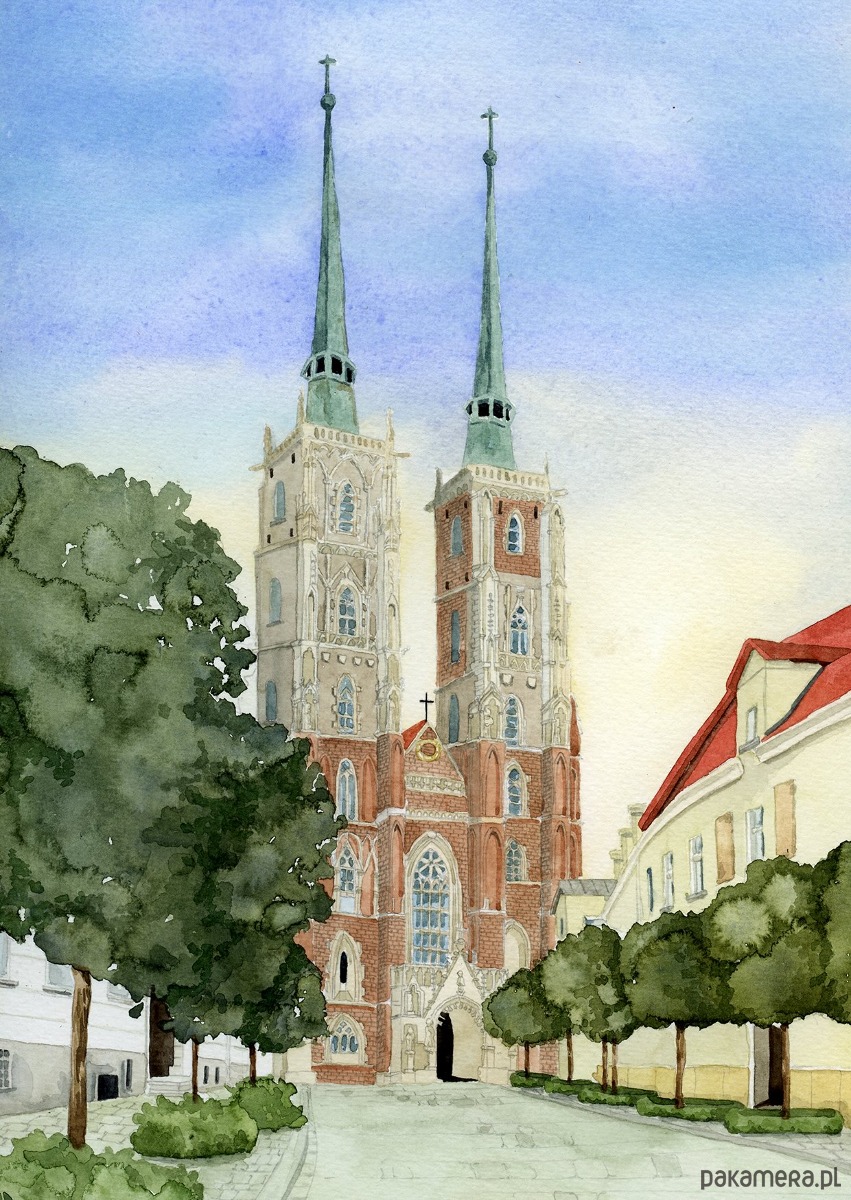 Plakat Wrocław, Katedra św. Jana Chrzciciela, Ostrów Tumski, akwarela