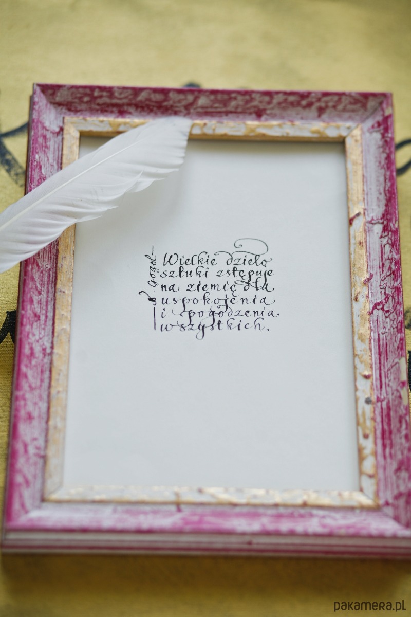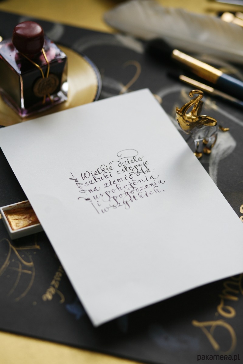 Cytat Gogola wykaligrafowany ręcznie czarnym atramentem na włoskim papierze ekologicznym: