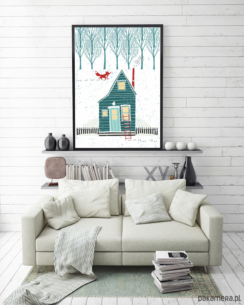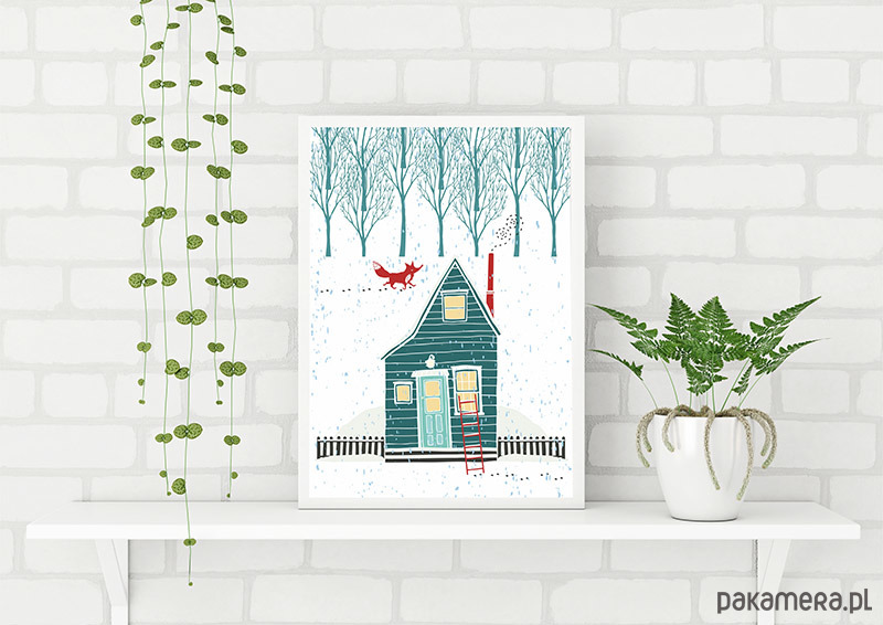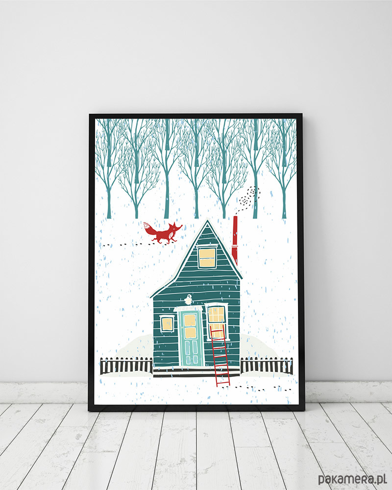 Plakat z domkiem i lisem, home sweet home