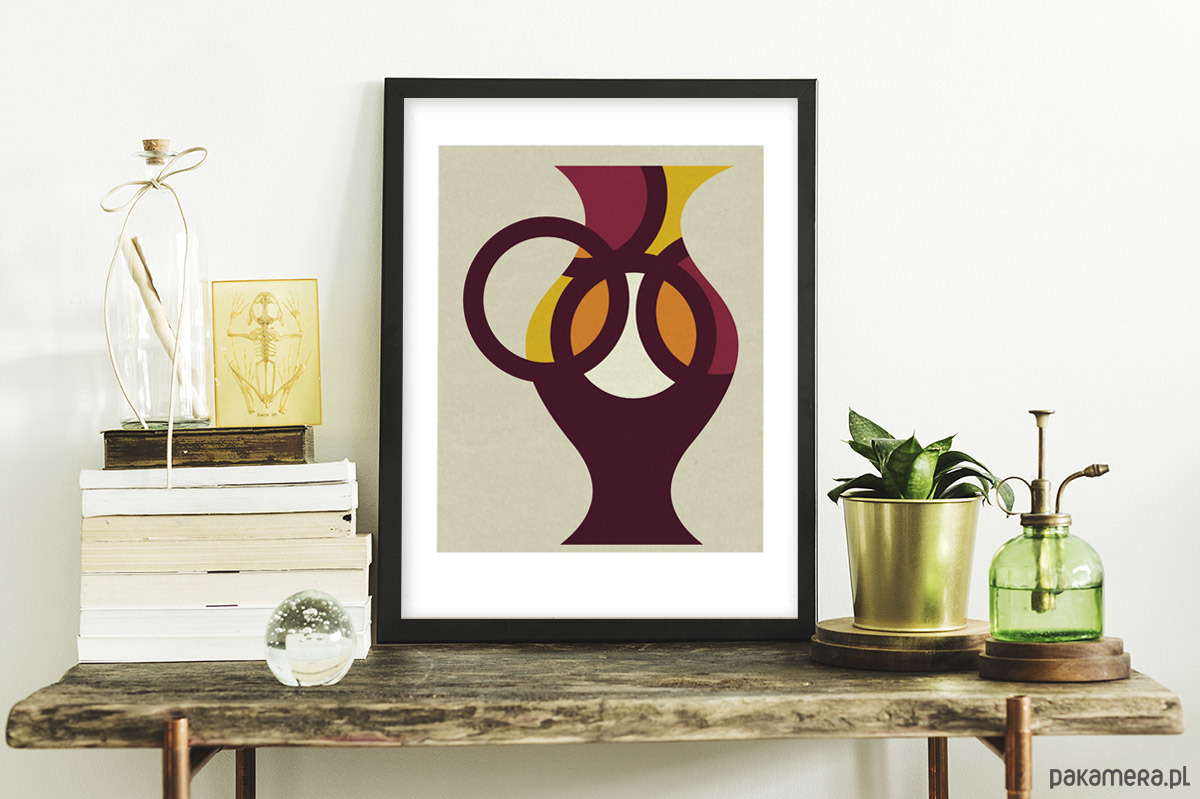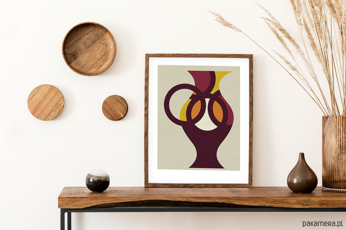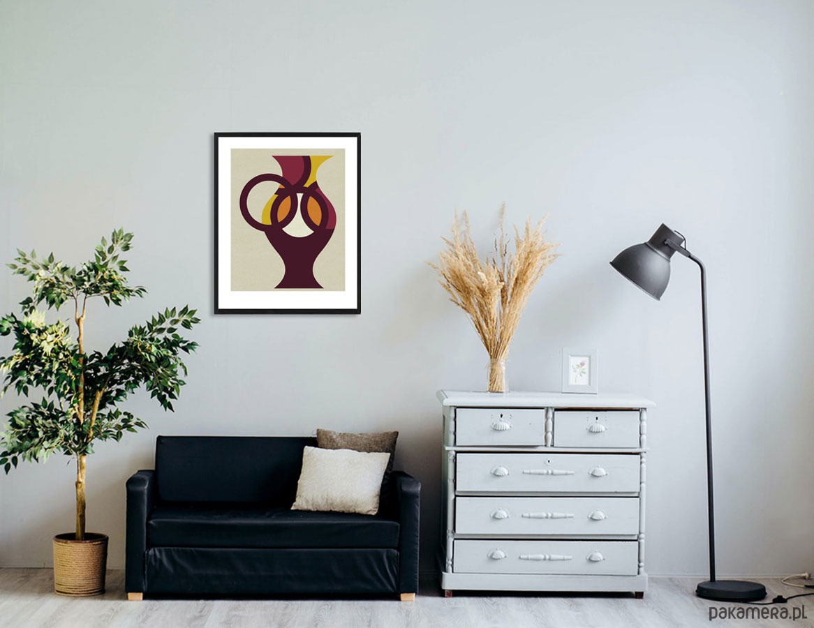 Minimalistyczny plakat dekoracyjny z dzbankiem utrzymany w spokojnej tonacji kolorystycznej. Autorski projekt, wysoka jakość wydruku. Plakat drukowany jest z białym marginesem (passe partout).