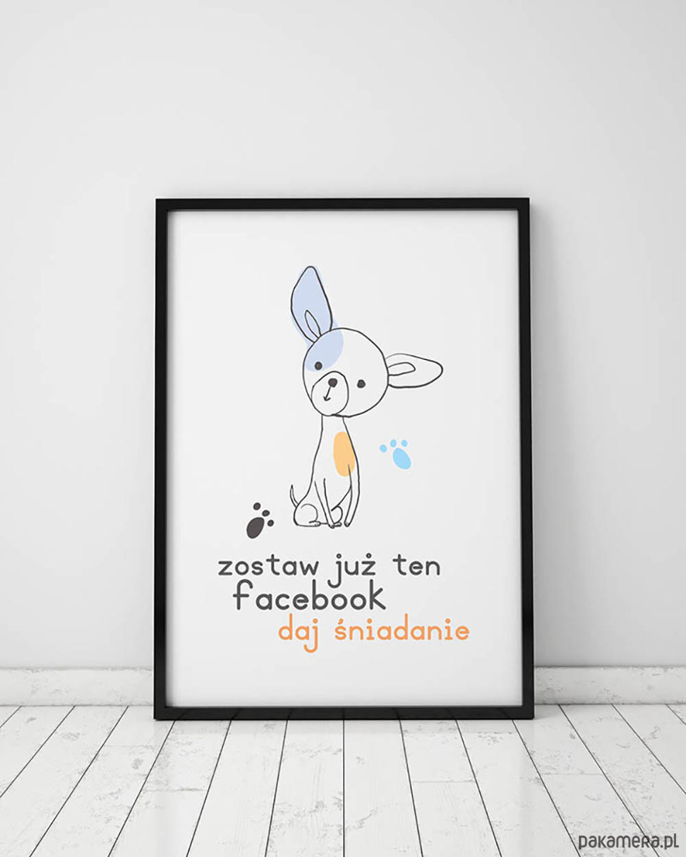 Plakat z kolekcji pieski. Zostaw już ten facebook...