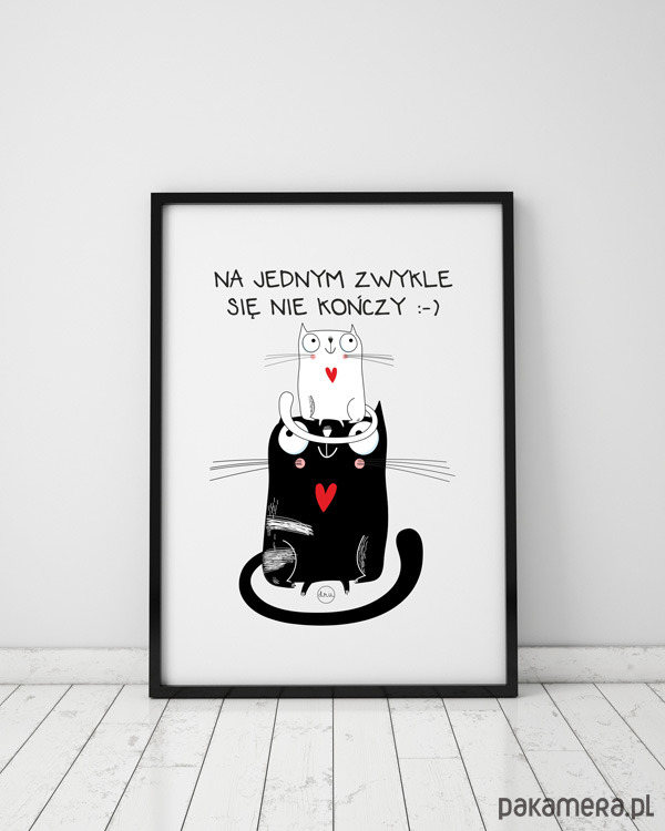 Plakat z kotem. Na jednym zwykle się nie kończy
