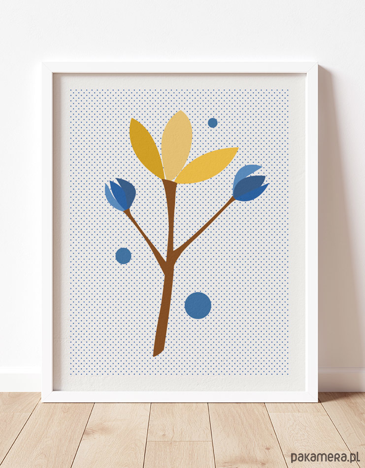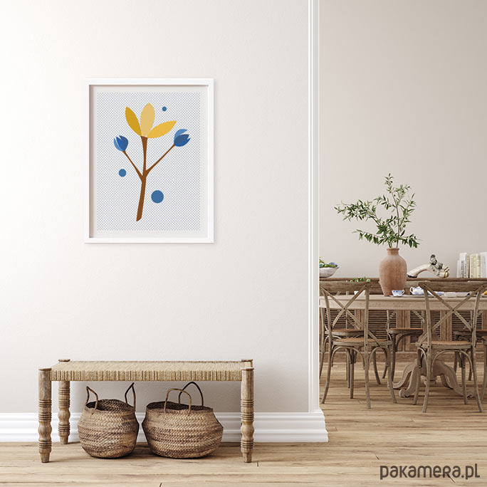 Plakat z subtelnym motywem kwiatowym wprowadzi do wnętrza świeżość i przyjemny nastrój. Pięknie prezentuje się w jasnych wnętrzach. Współgra z bielą i jasnym drewnem. Spokojna, harmonijna kompozycja sprawdzi się również jako dekoracja w sypialni.