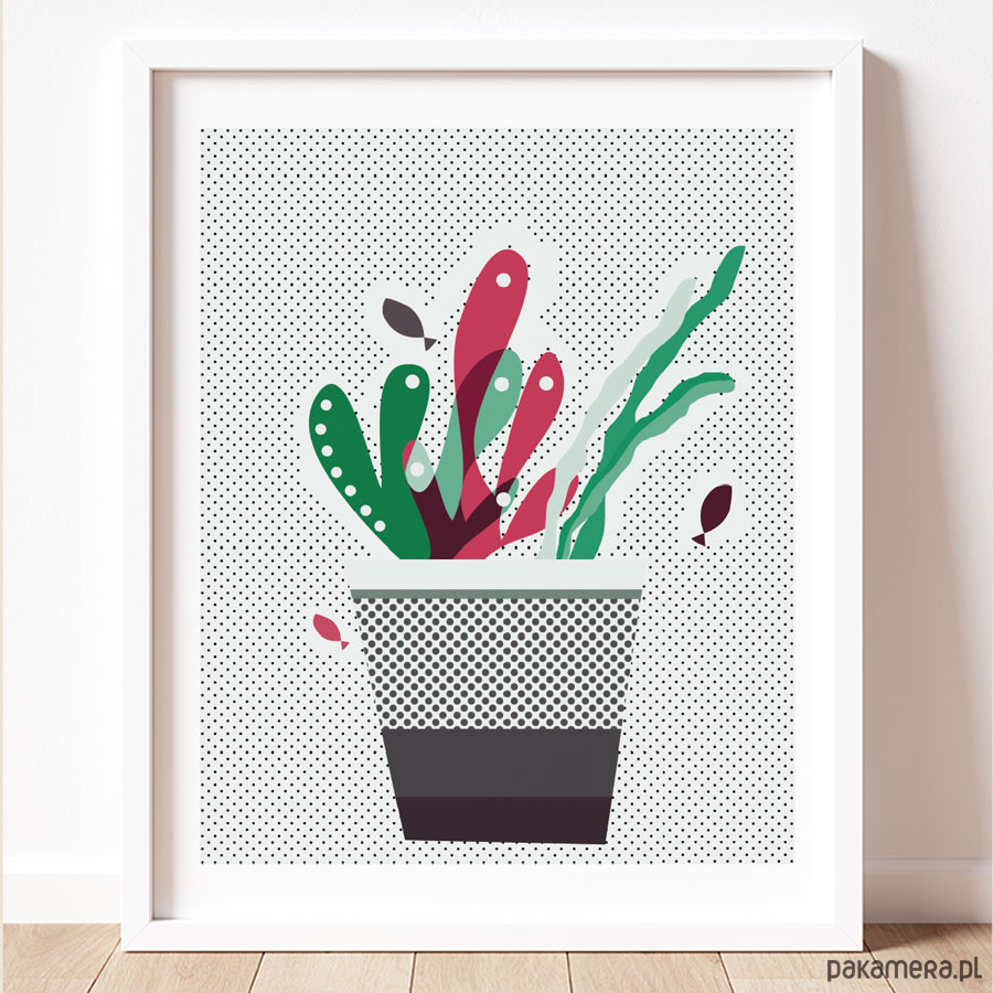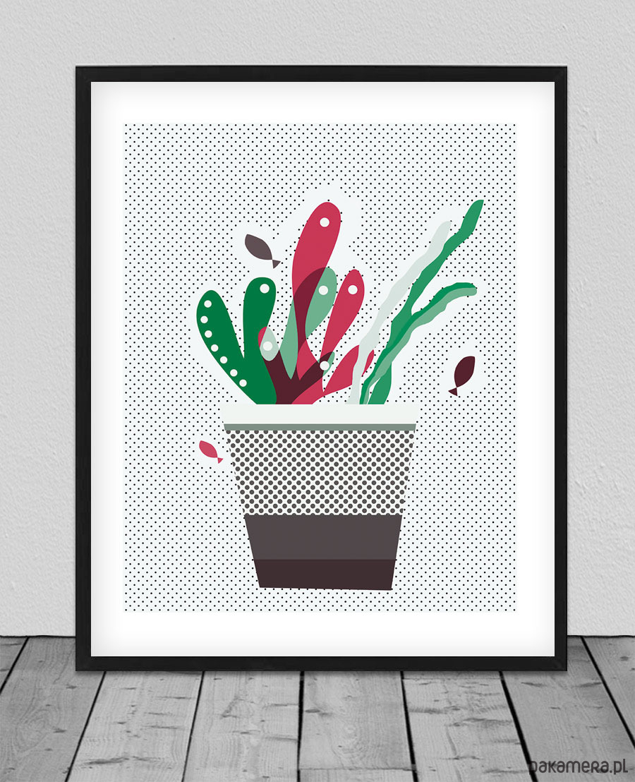 Podwodne roślinki w... doniczce :) Autorski projekt, wysoka jakość wydruku. Plakat drukowany jest z białym marginesem (passe partout).