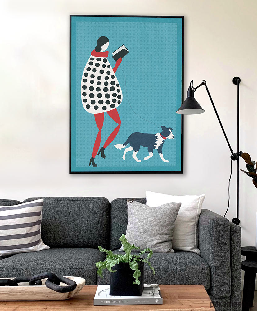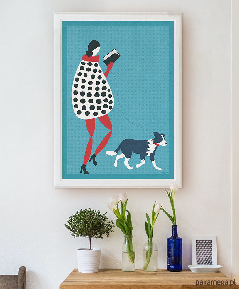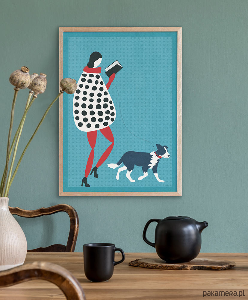 Spacer z psem i czytanie to dwie rzeczy, które niezawodnie poprawiają nastrój. Tak właśnie powstał nasz plakat Zaczytany spacer - łącząc to, co najlepsze w graficznej ilustracji. Pięknie prezentuje się we wszelkich wnętrzach wypełnionych książkami i psami.