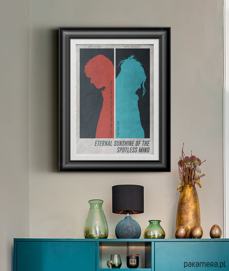 Plakat z autorską grafiką inspirowaną filmem "Zakochany bez pamięci" (Eternal Sunshine of the Spotless Mind), reż. Michel Gondry.