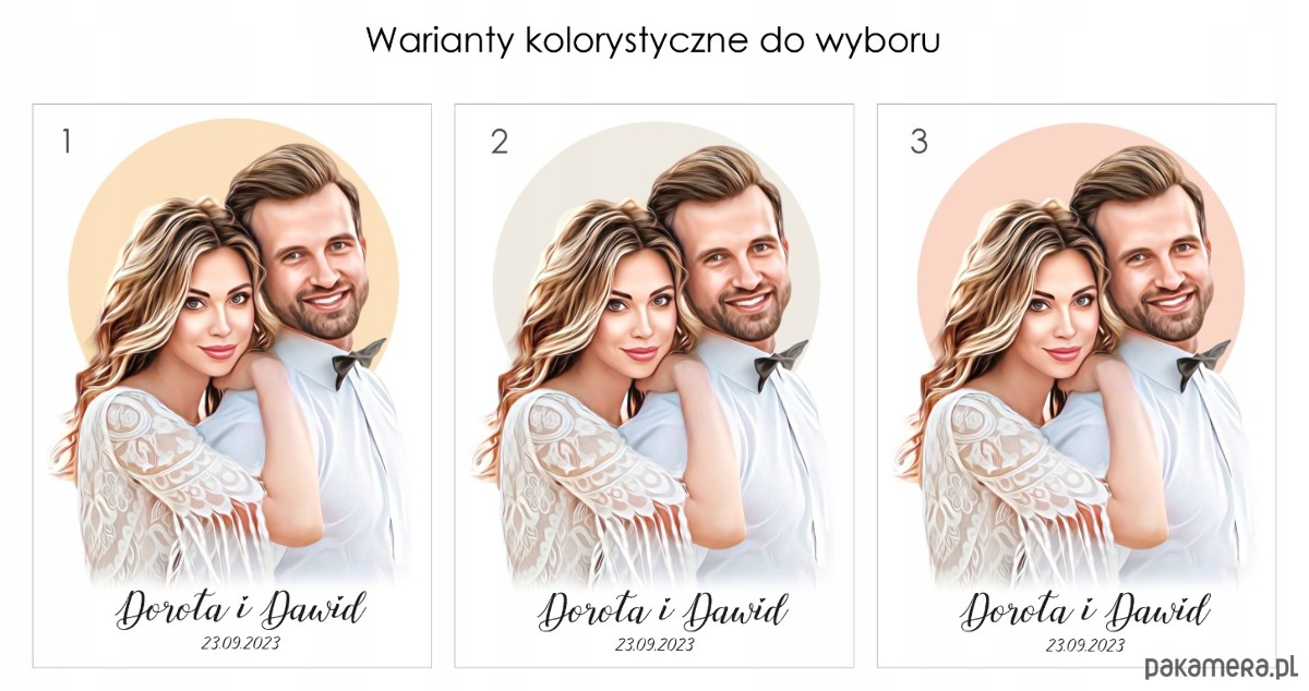 - Prześlij zdjęcie na nasz adres mailowy (Jeżeli masz wątpliwości, które zdjęcie najlepiej nadaje się na portret, prześlij do nas 2-3 propozycje, wybierzemy to które nadaje się najlepiej) Wyślij również imiona oraz napisz który wariant kolorystyczny Cię interesuje.