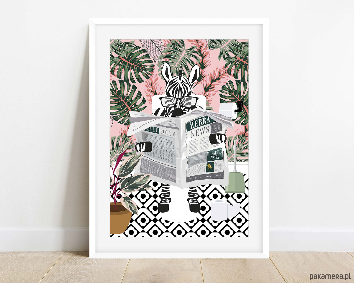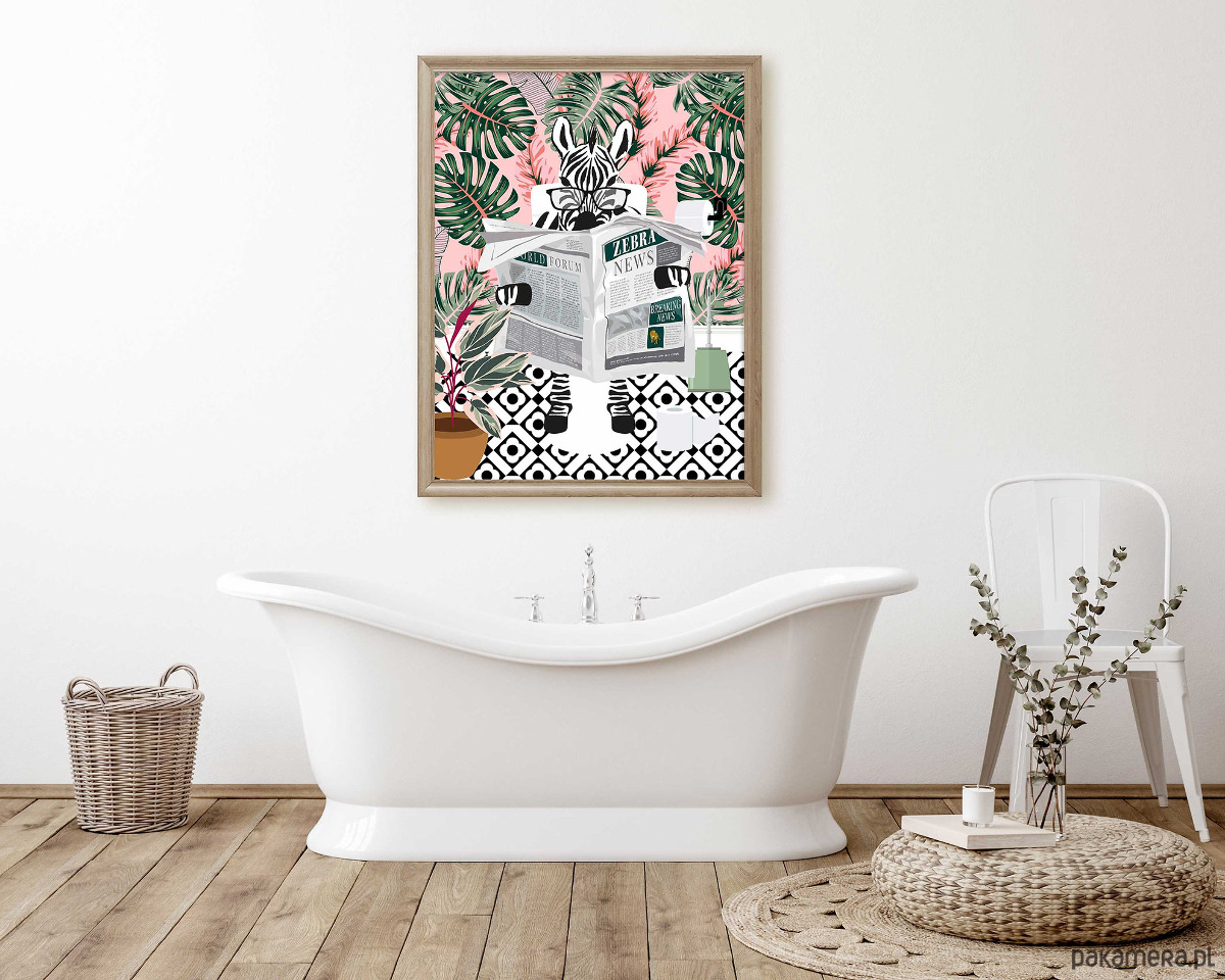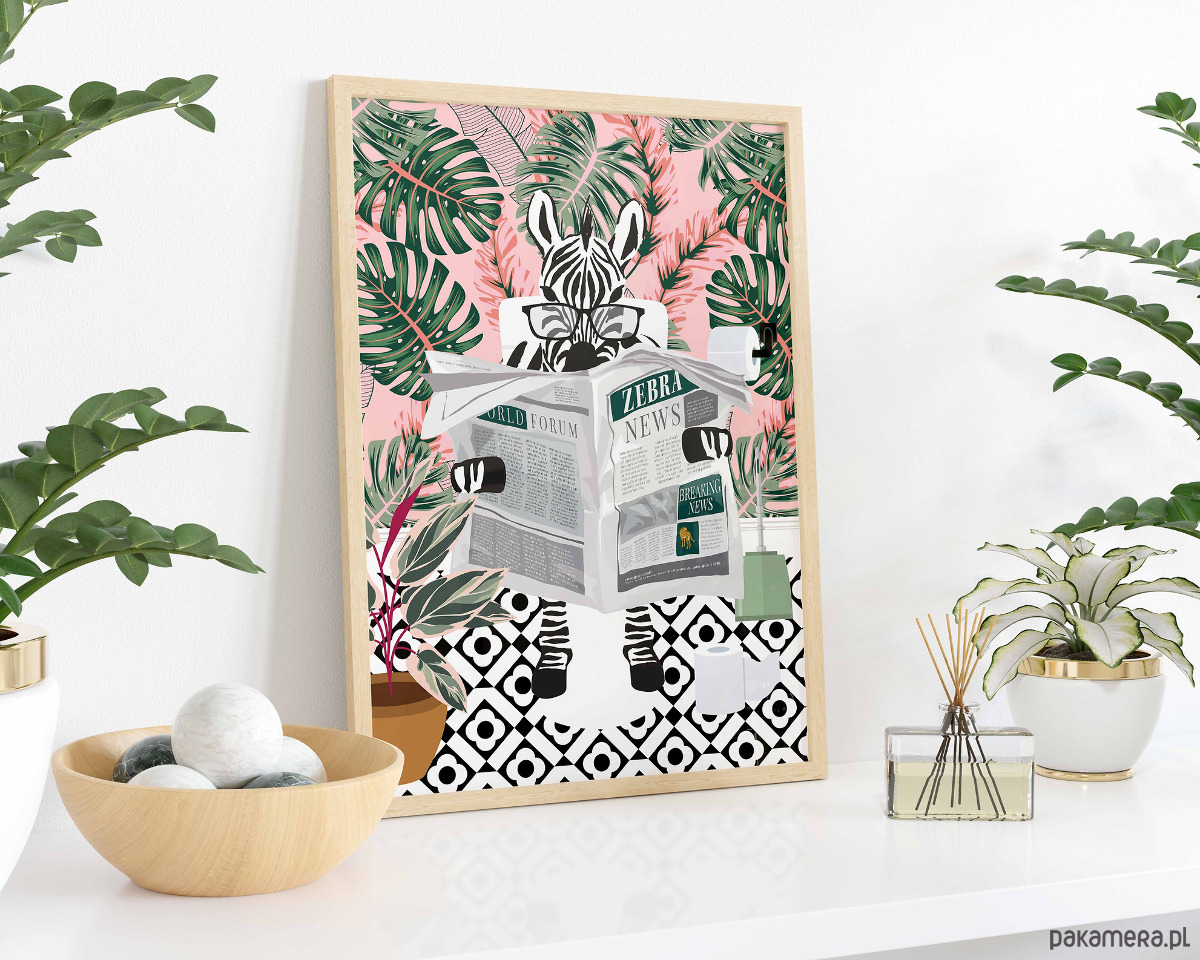 Plakat Zebra w różowym ogrodzie