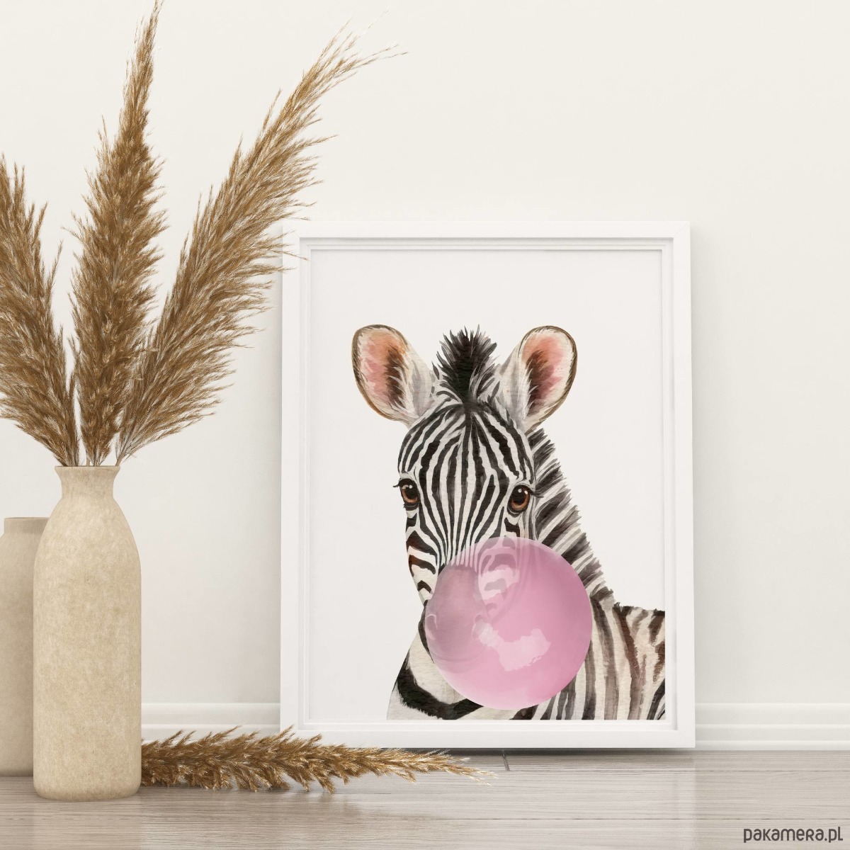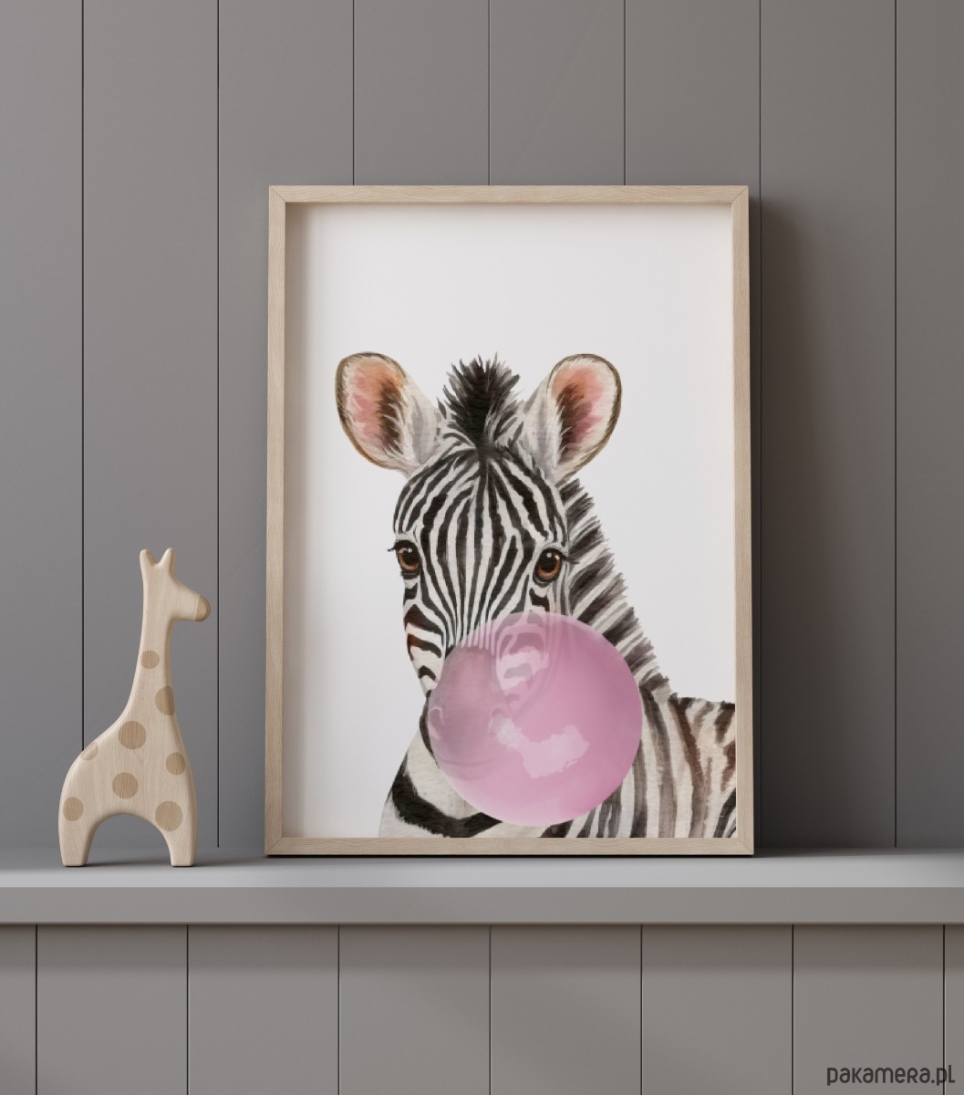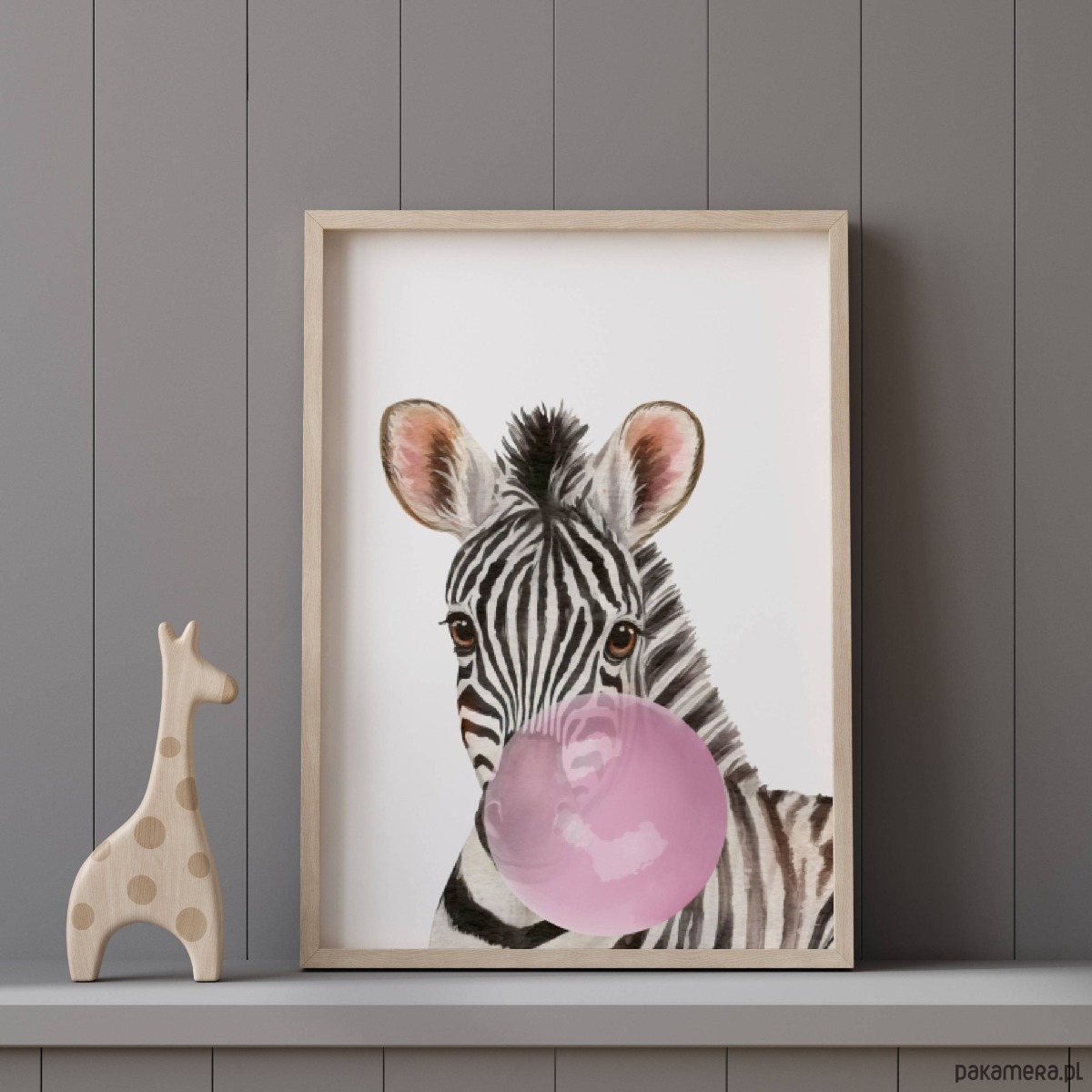 Przedstawiamy Państwu piękny plakat do dziecięcego pokoju- Zebra z Gumą Balonową.