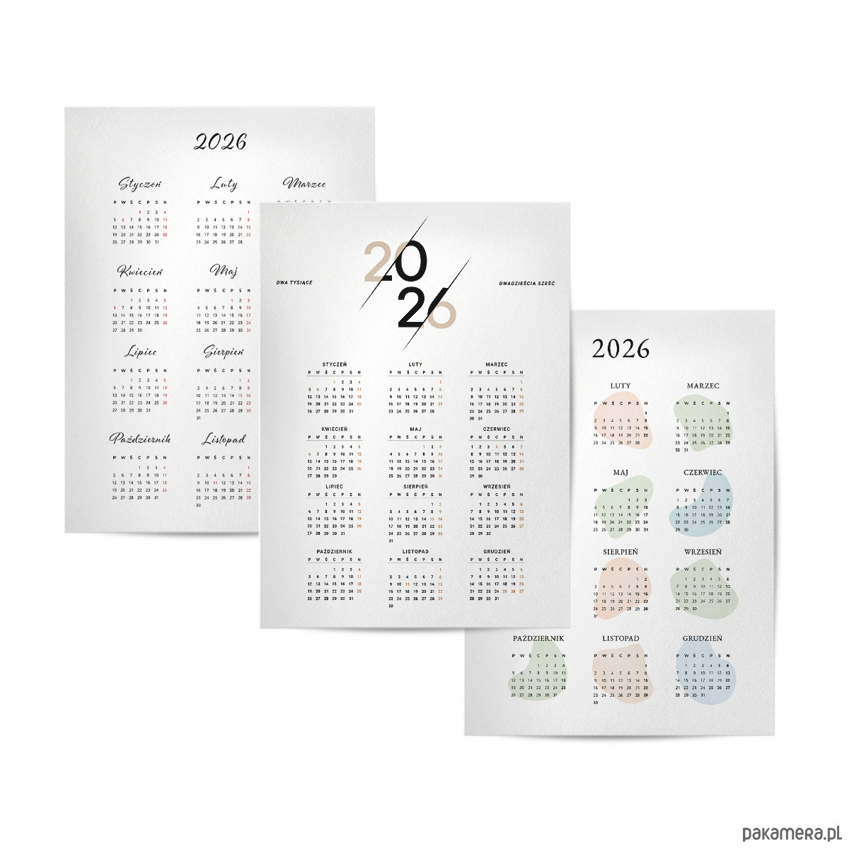 Plakat Zestaw 3 kalendarzy 2026, nowoczesne, minimalistyczne, stylowe, 3x30x4...