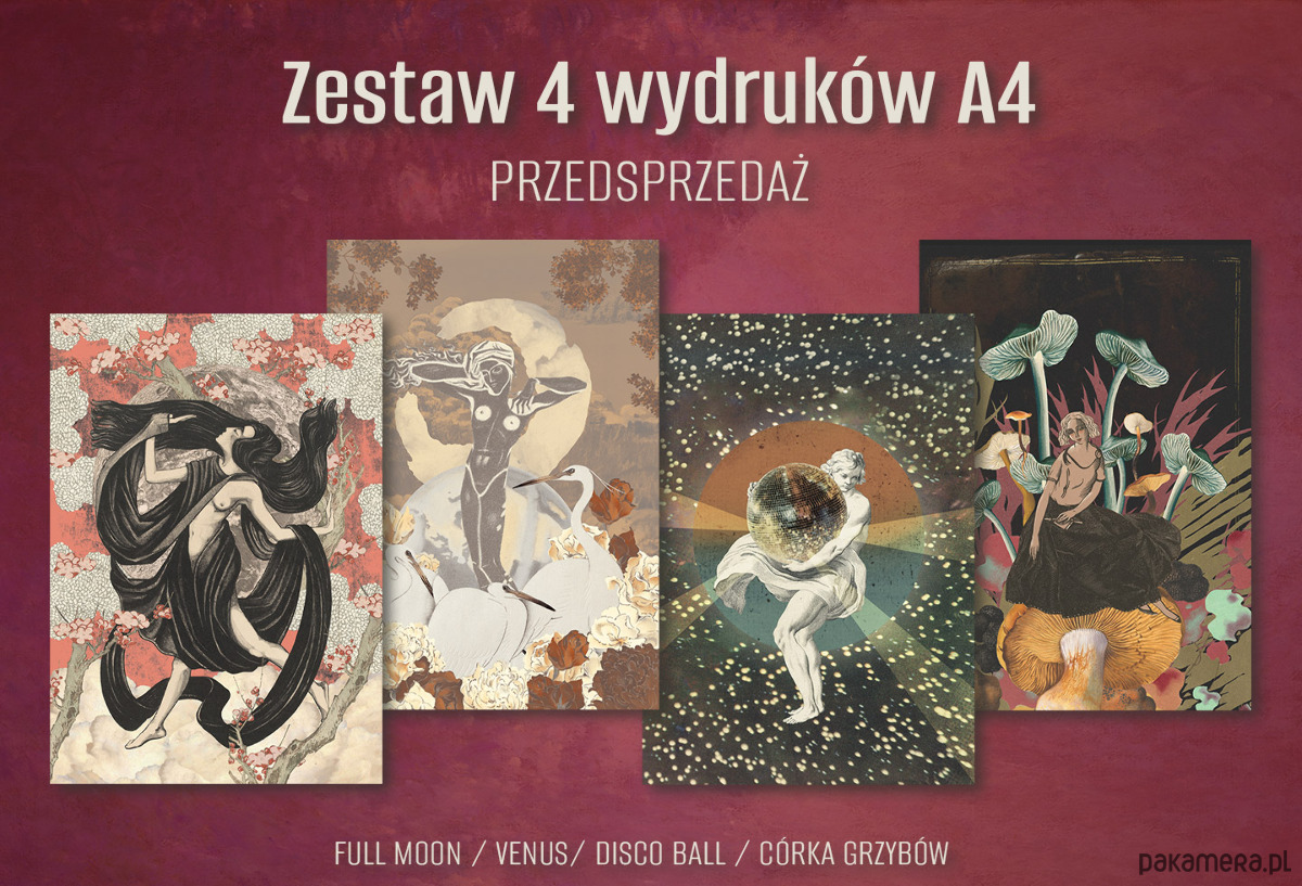Zestaw zawiera 4 wydruki: Full Moon, Venus, Disco Ball, Córka Grzybów.