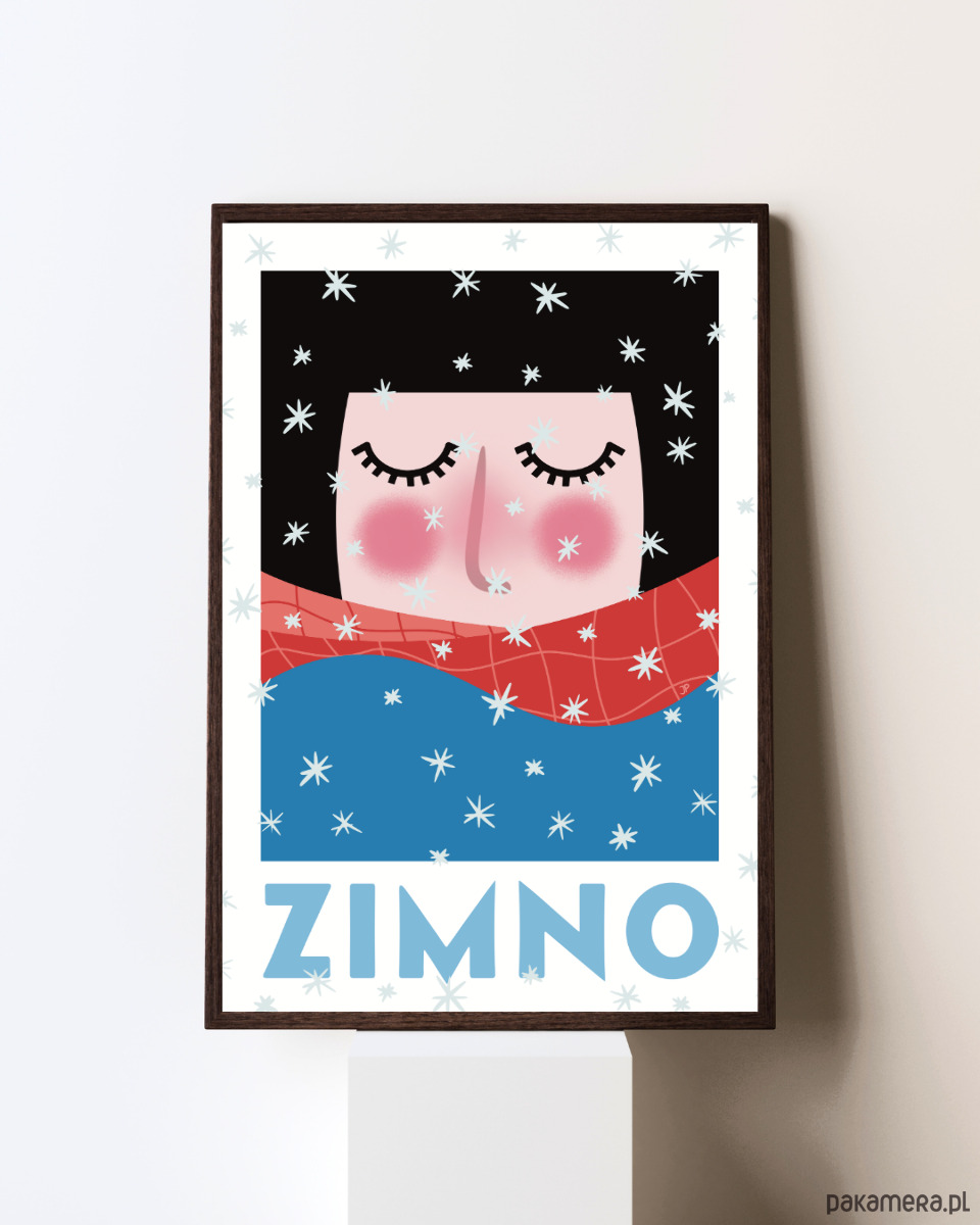 Zabieram Was w podróż po zimowej krainie i prezentuję nowy plakat ZIMNO. Choć w domu koc jest moim stałym atrybutem i tęsknię za latem, chciałam pokazać na grafice, że zmrożone, czerwone policzki mogą być również pięknym wspomnieniem długich spacerów oprószonych śniegiem lub szalonych zjazdów na sankach i godzin spędzonych na lepieniu bałwana. Plakat dostępny również w wersji bez białego obramowania - zajrzyj do wszystkich plakatów.