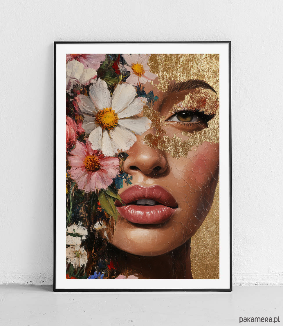 Plakat Złota twarz i kwiaty
