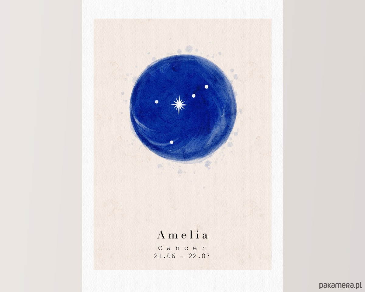Plakat - Metryczka- Znak zodiaku Rak/ cancer - Plakat personalizowany