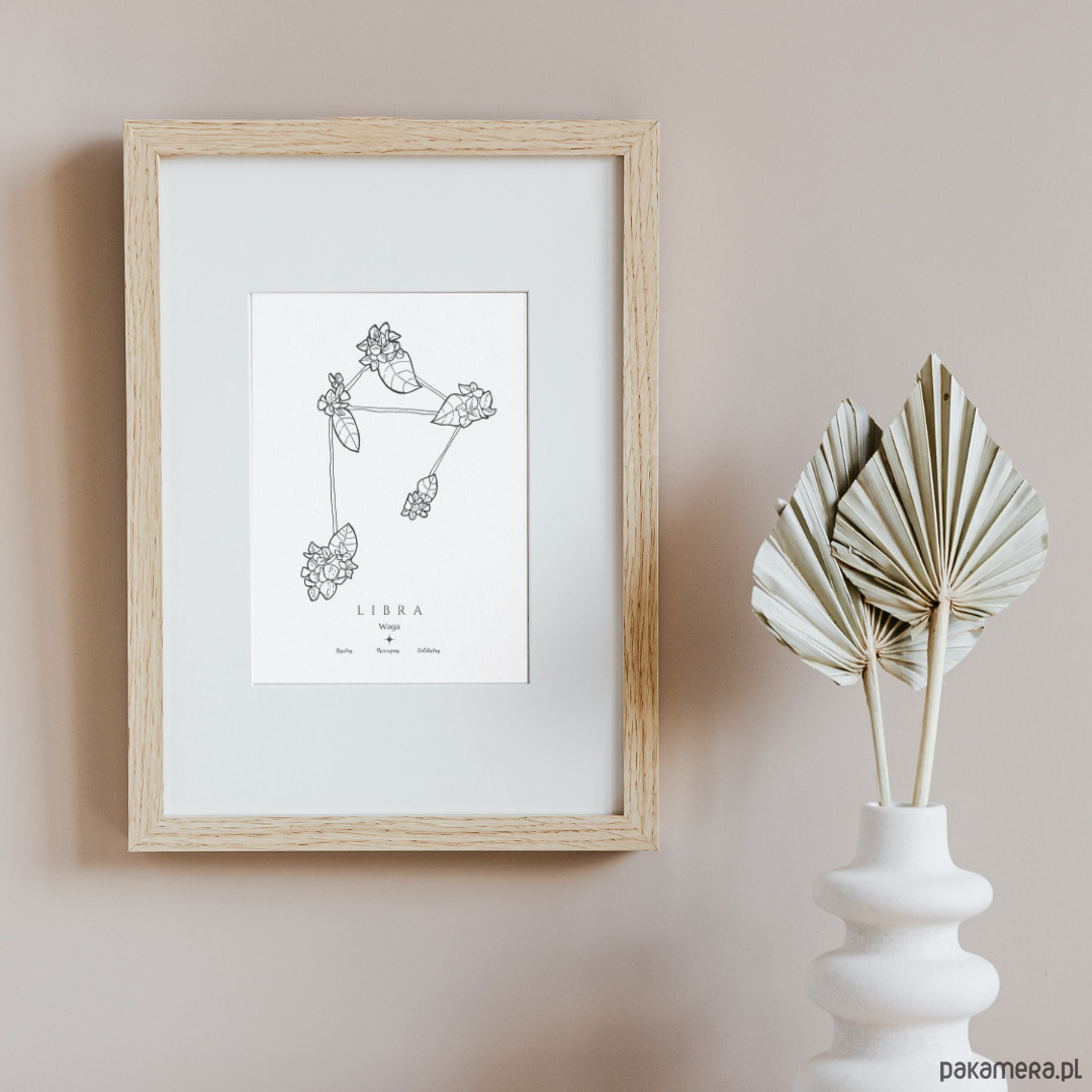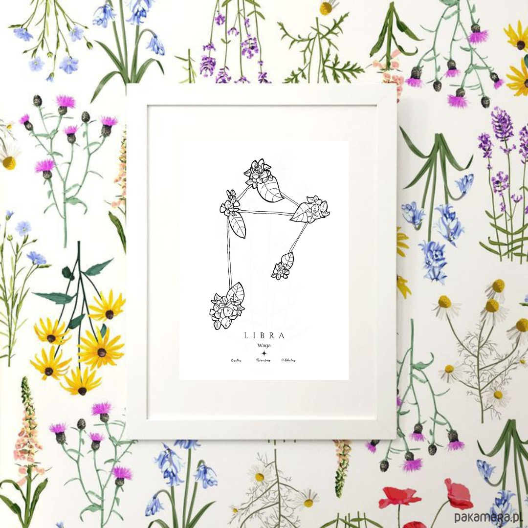 Plakat Znaki Zodiaku Waga Libra - kwiatowa konstelacja gwiazd