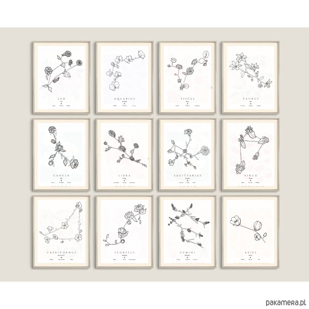 PLAKAT ZNAKI ZODIAKU/KONSTELACJE KWIATOWE