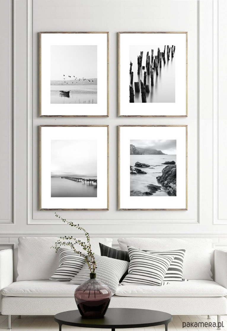 Czarno białe fotografie z motywem morskim.