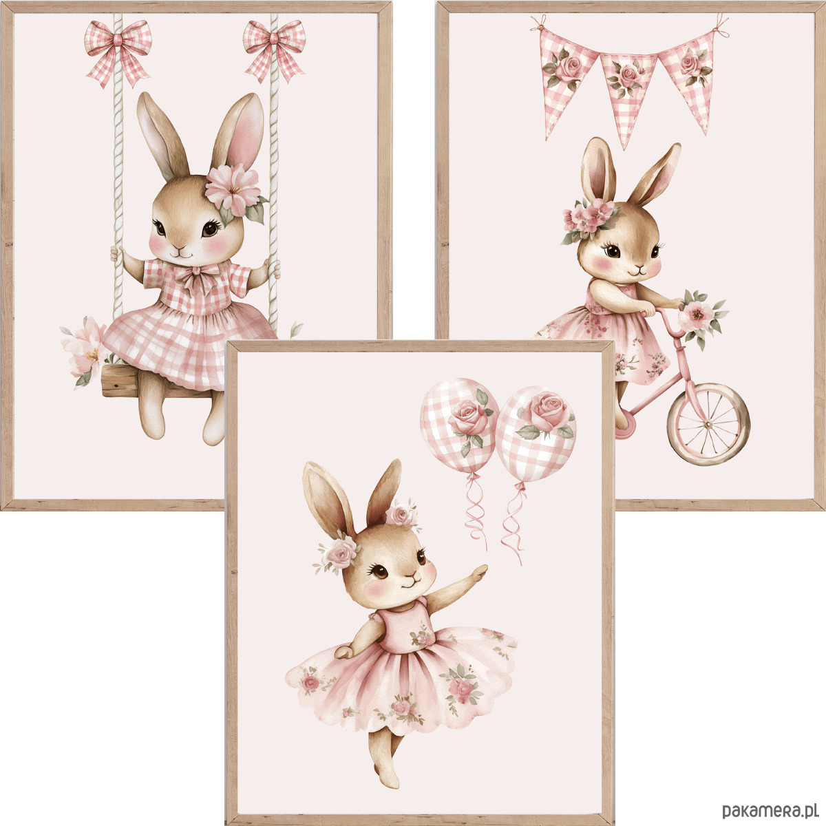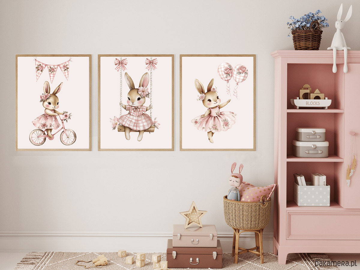Zestaw 3 plakatów do pokoju dziewczynki Króliczki