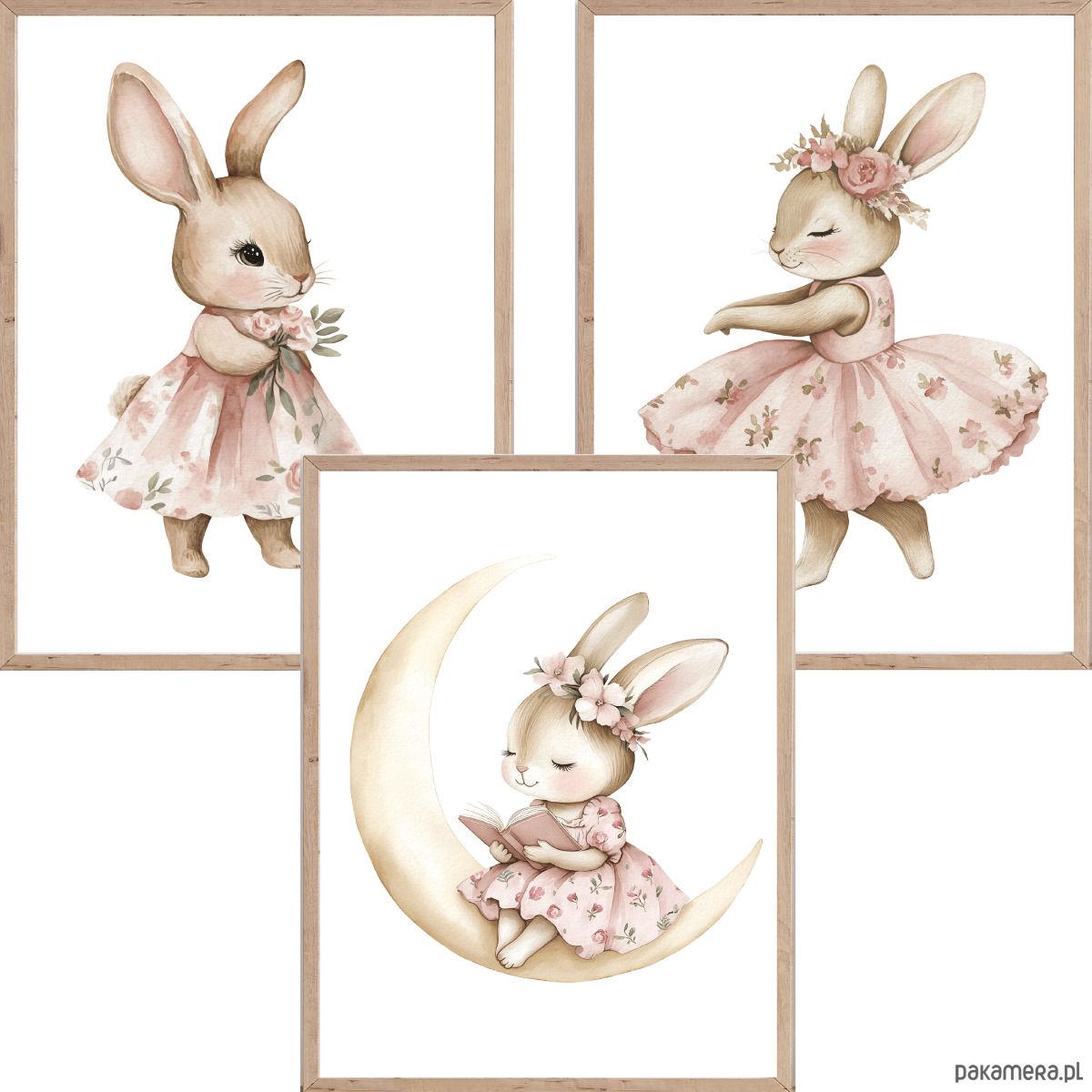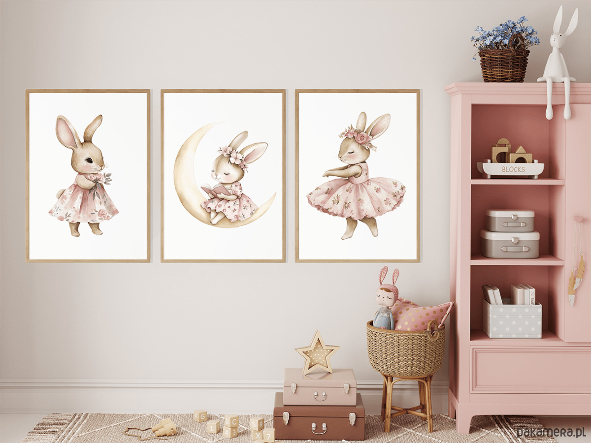 Zestaw 3 plakatów do pokoju dziewczynki – Króliczki baletnice