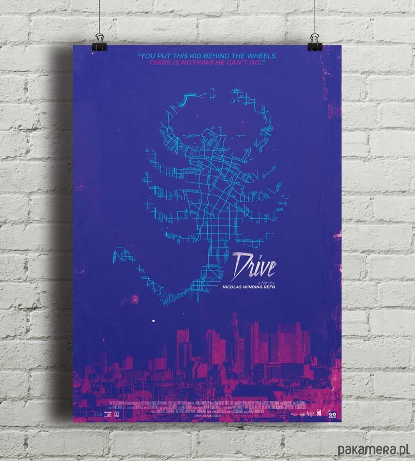 Plakat z autorską grafiką inspirowaną filmem "Drive", reż. Nicolas Winding Refn.