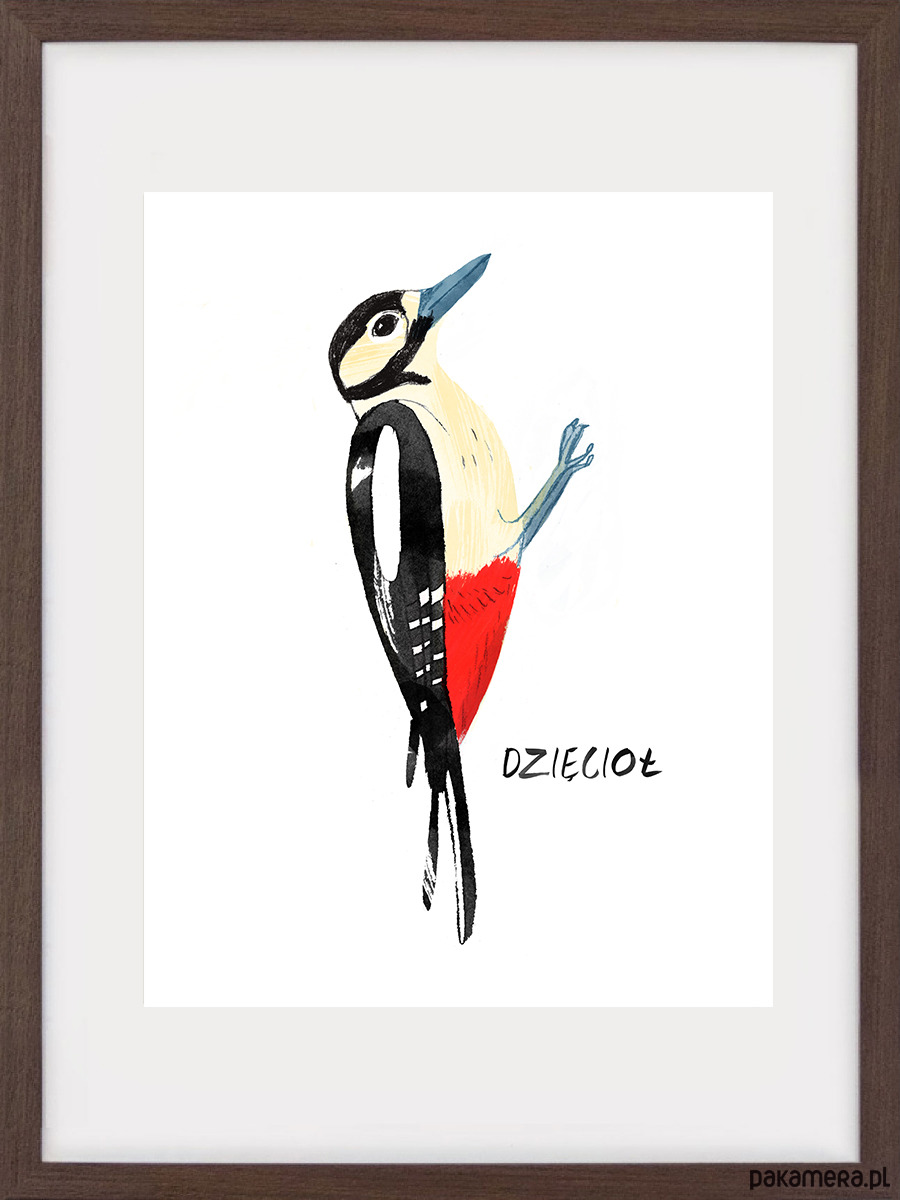Grafika w rozmiarze 30x40 najlepiej wyglądać będzie w ramce 40x50 z passepartout w towarzystwie kilku innych ptaków z serii.