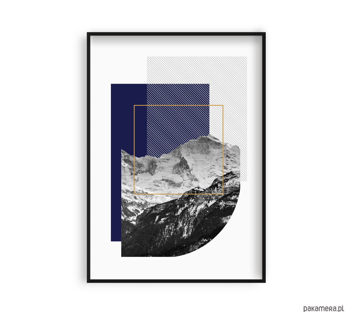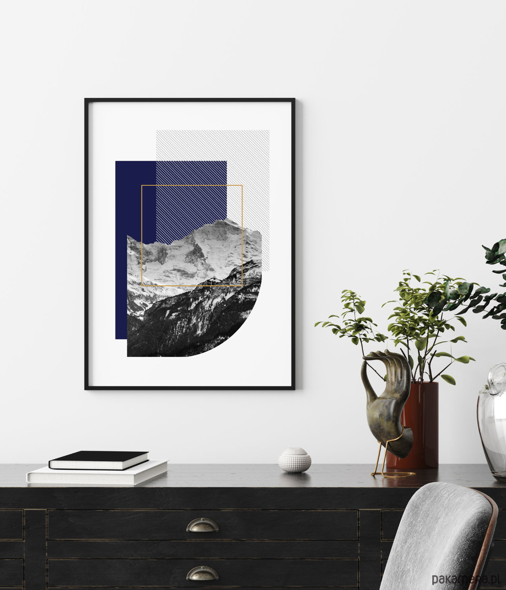 GÓRY 5 - plakat abstrakcyjny z górskim motywem w odcieniach granatu i kobaltowego niebieskiego.