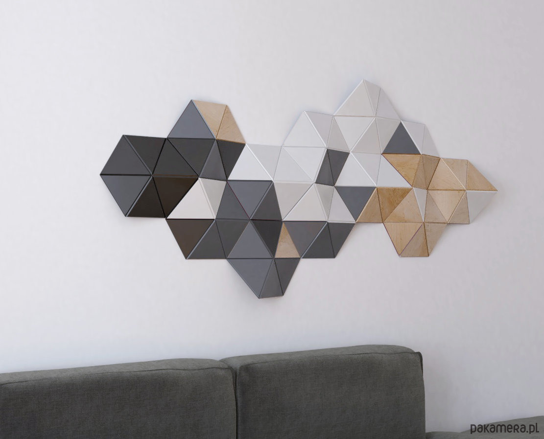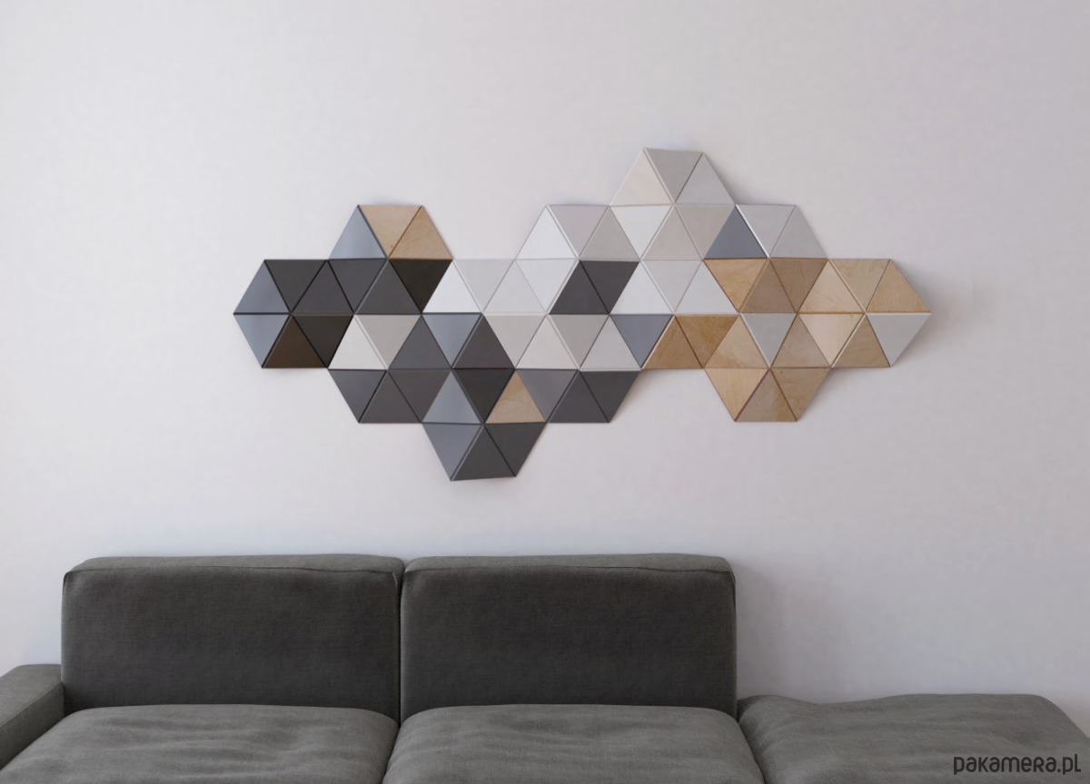 Montaż — moduły są przyklejane do ściany po kolei przy użyciu kleju. W paczce przesyłamy też instrukcję montażu oraz papierowy szablon ze wzorem, który pomoże Ci wyznaczyć dokładne miejsce zawieszenia kompozycji ze zdjęcia.